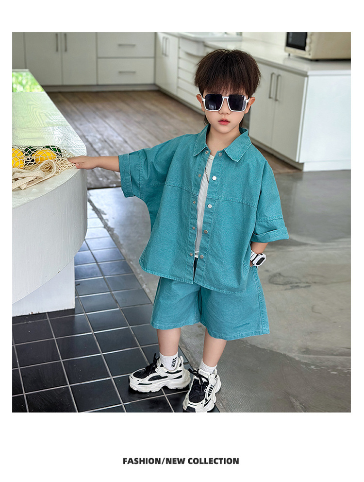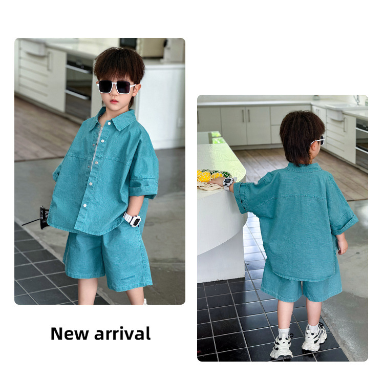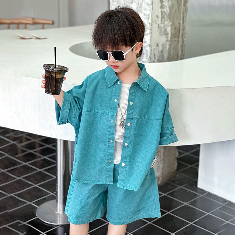 남학생 세트 어린이 반팔 셔츠 바지 여름 2025 년 새 아동복 한국 패셔너블 쿨웨어 얇은