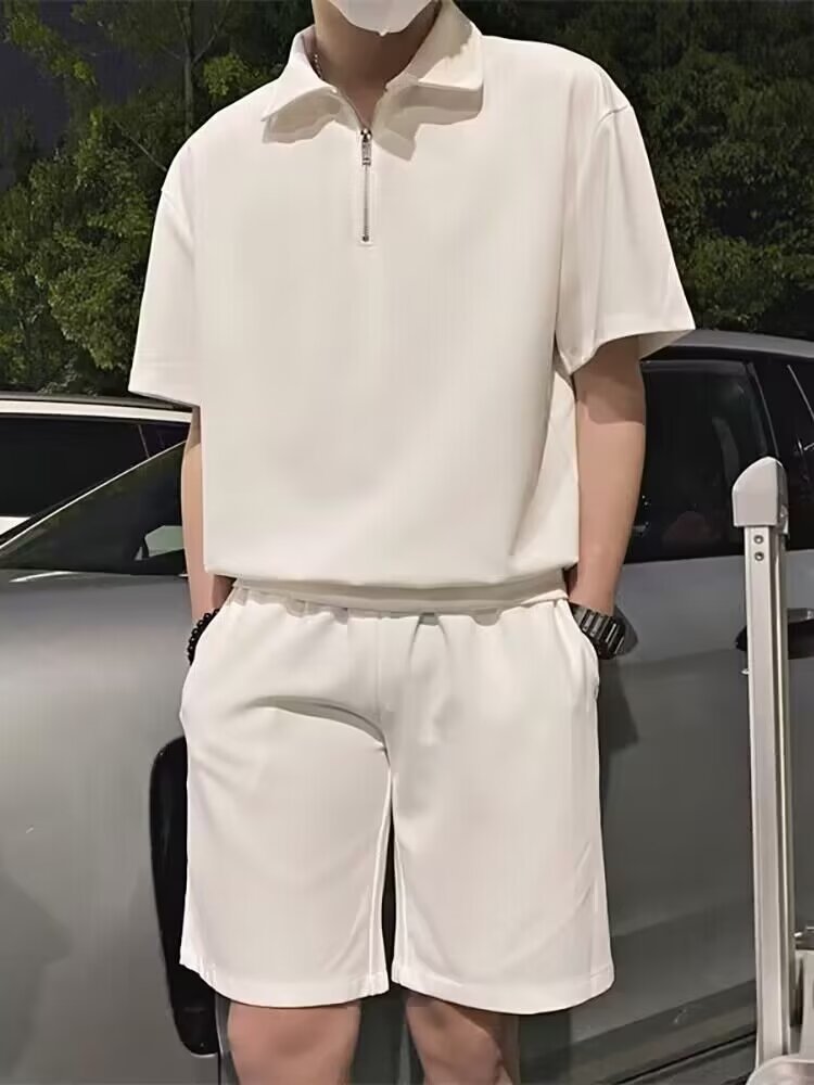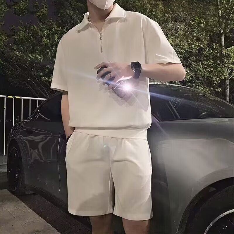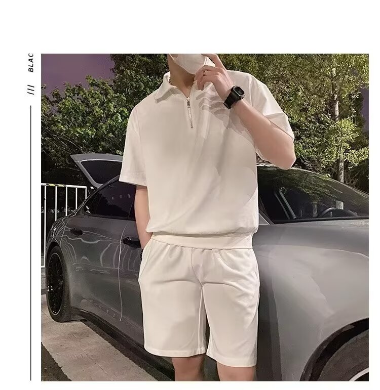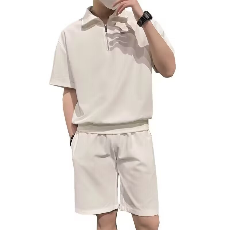 남성 캐주얼 슈트 2024 여름 트렌디 브랜드 반팔 폴로 셔츠 스포츠 반바지 잘 생긴 남성 투피스 세트
