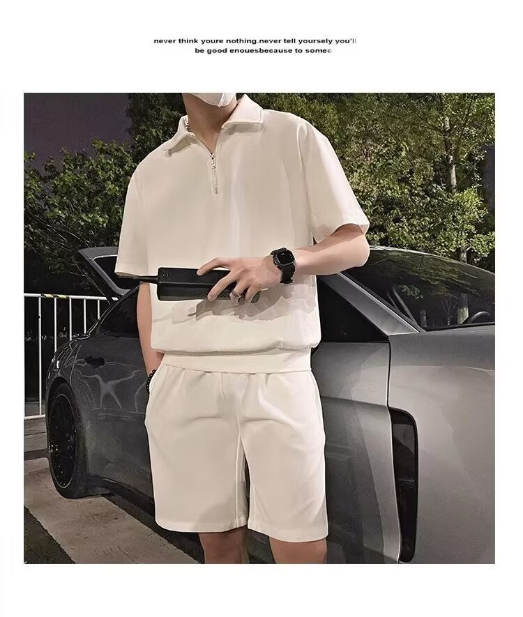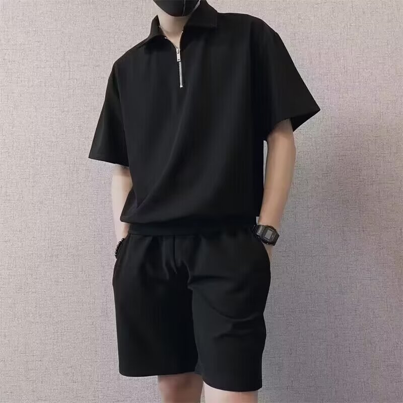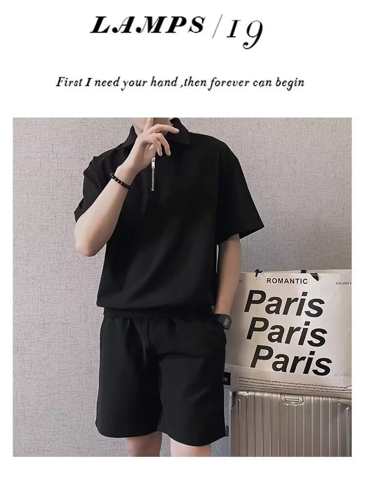 남성 캐주얼 슈트 2024 여름 트렌디 브랜드 반팔 폴로 셔츠 스포츠 반바지 잘 생긴 남성 투피스 세트스토어 가기