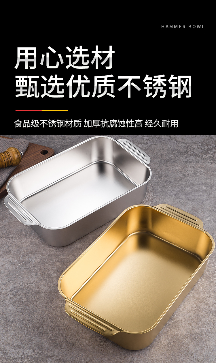304 스테인레스 스틸 평평한 바닥 두꺼운 생선 구이 접시 상업용 직사각형 베이킹 팬 트레이 황금 냄비 접시 저녁 식사 접시