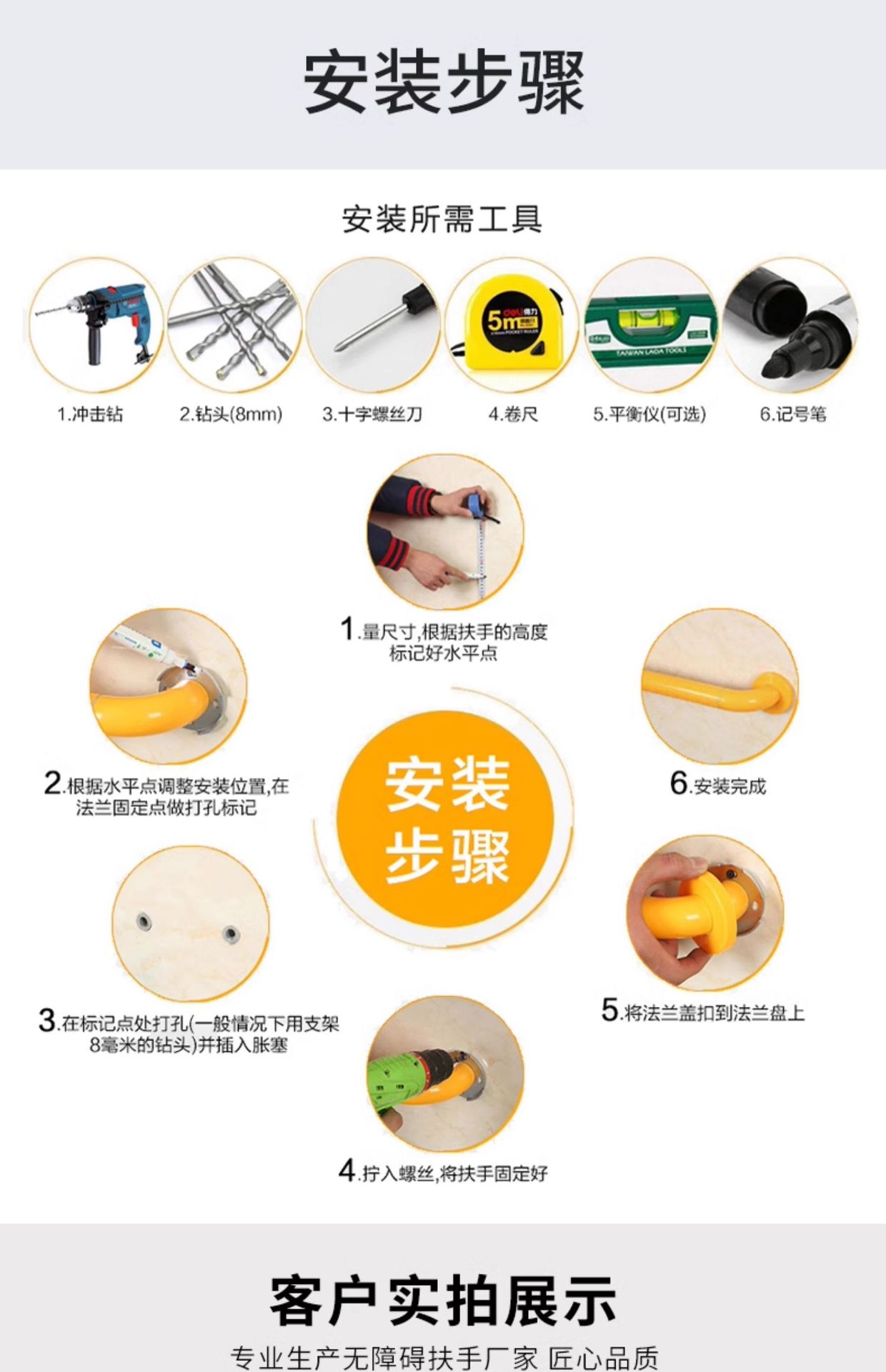 • 전문가용 강화 버전: 5m - 노란색 팔꿈치 2개 브래킷 6개