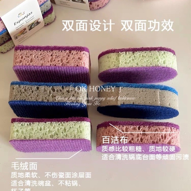 가정용 청소 스펀지, 두껍고 흡수성이 높은 고밀도 카드 포장 양면 주방 식기 세척 및 냄비 수세미