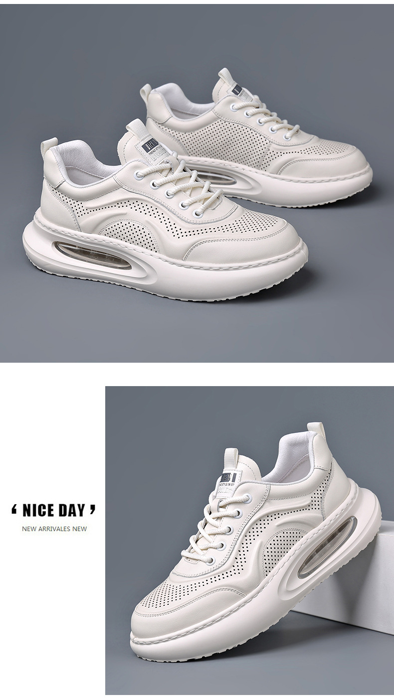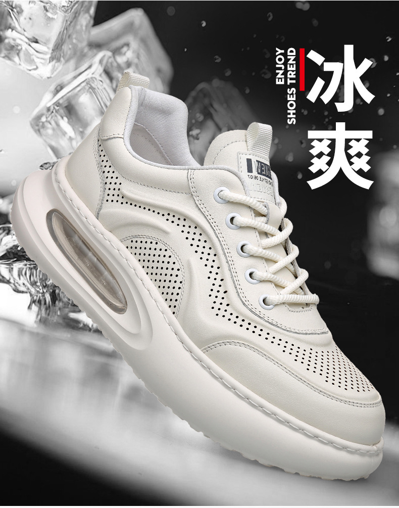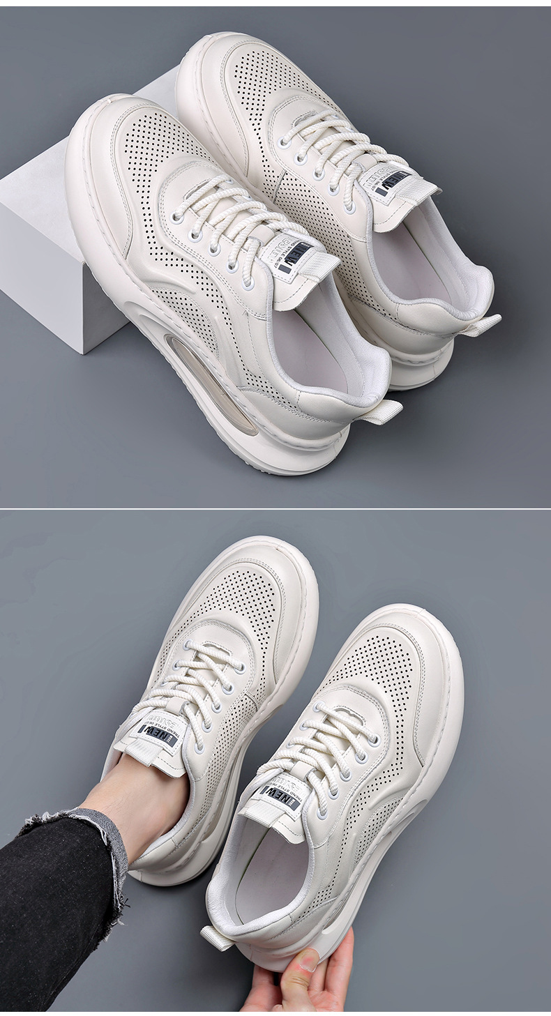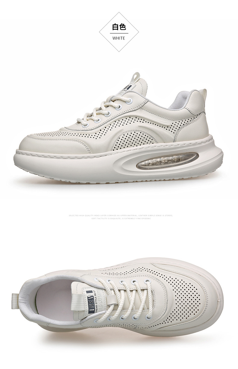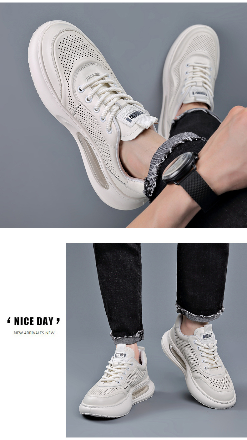 여름 정품 가죽 통기성 화이트 신발 할로우 샌들 홀 신발 남성 신발 에어 쿠션 단독 경량 두꺼운 단독 캐주얼 신발 가죽 신발
