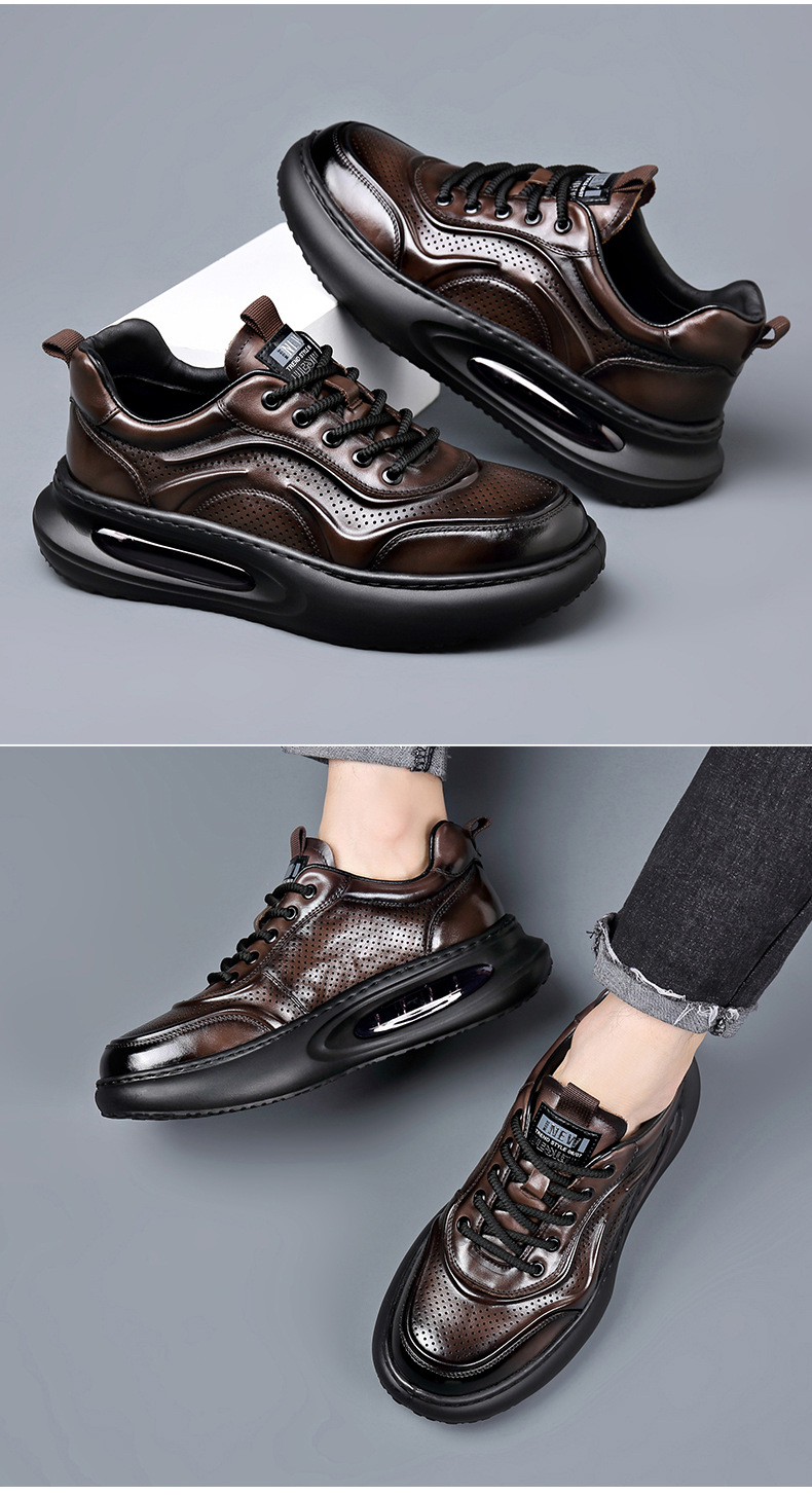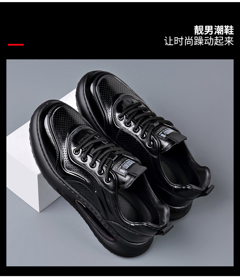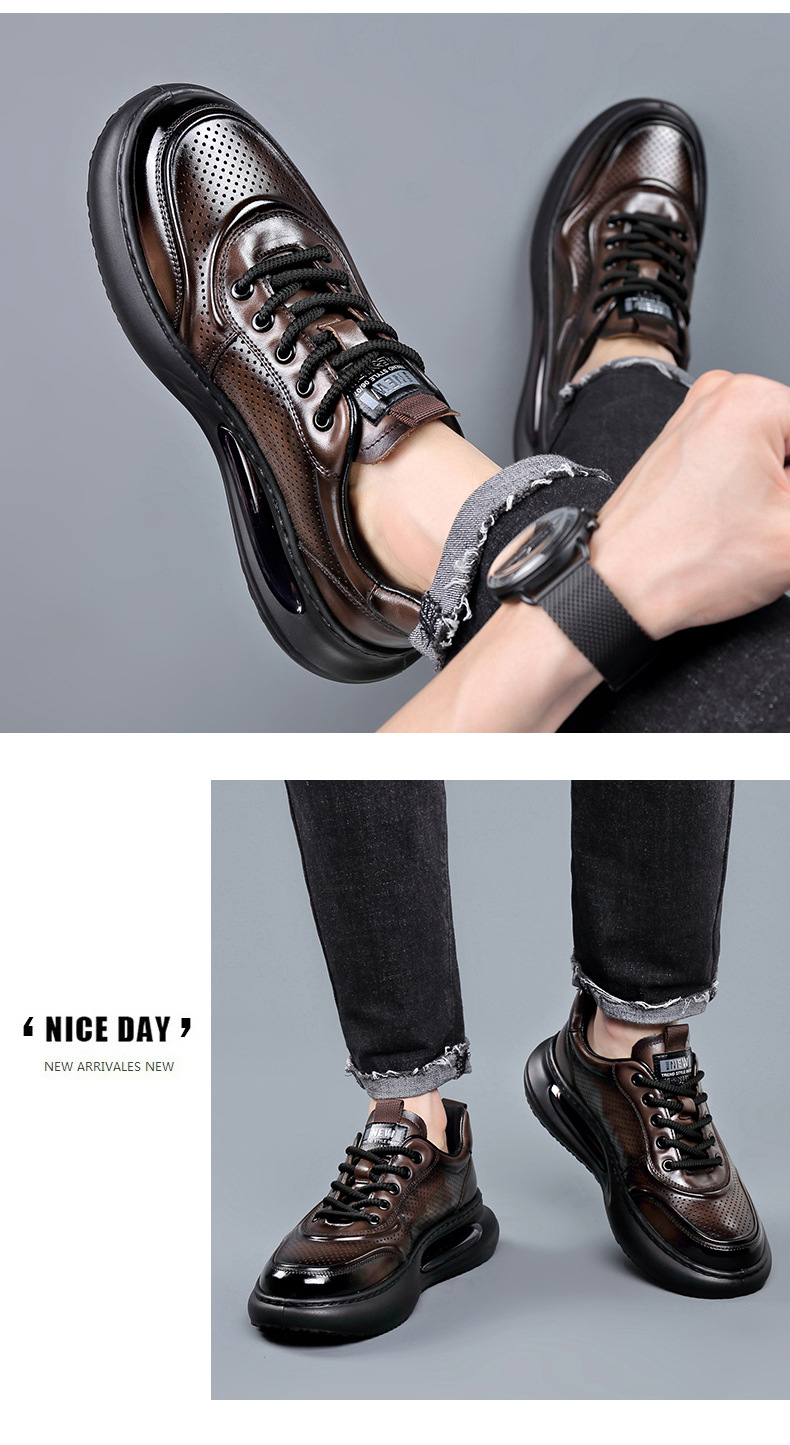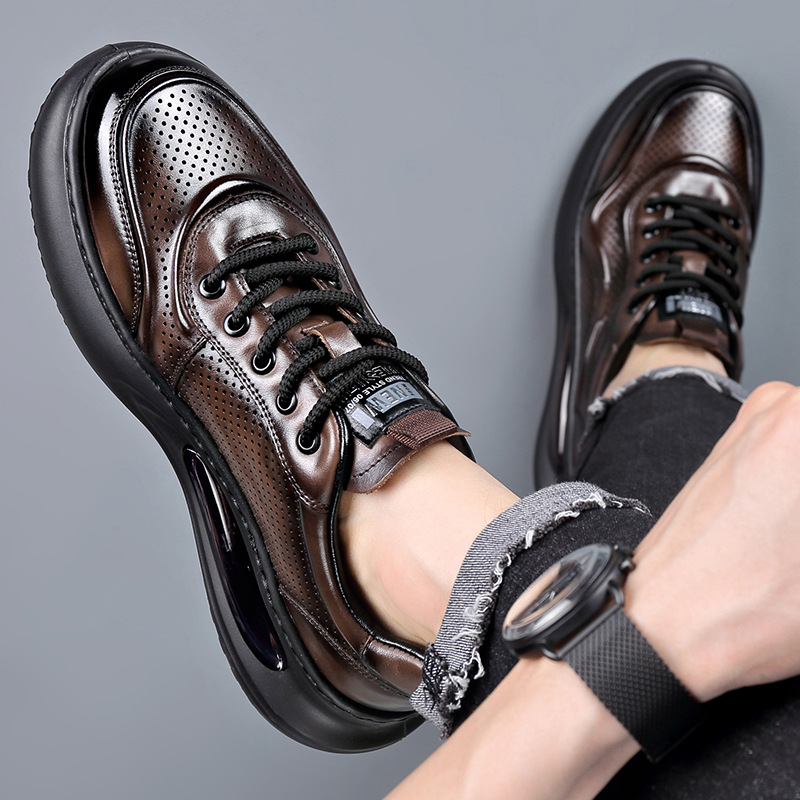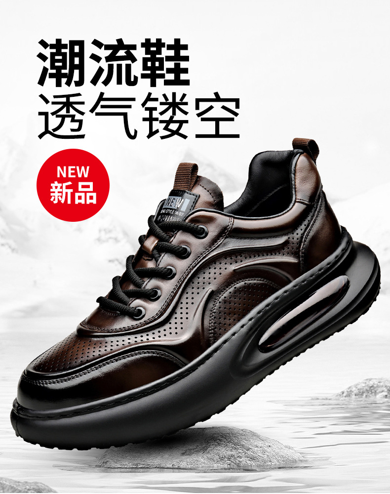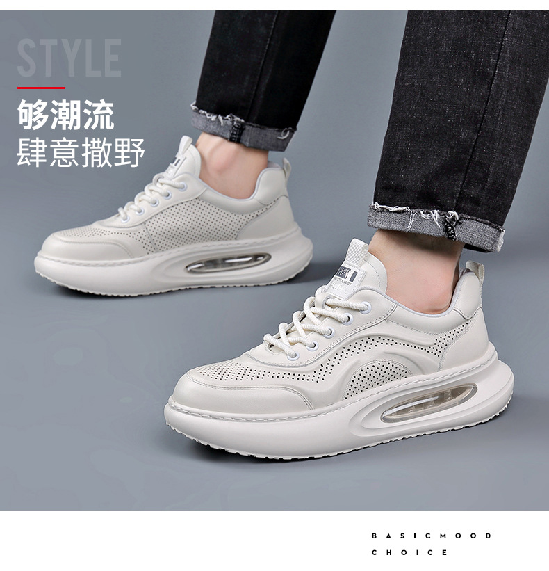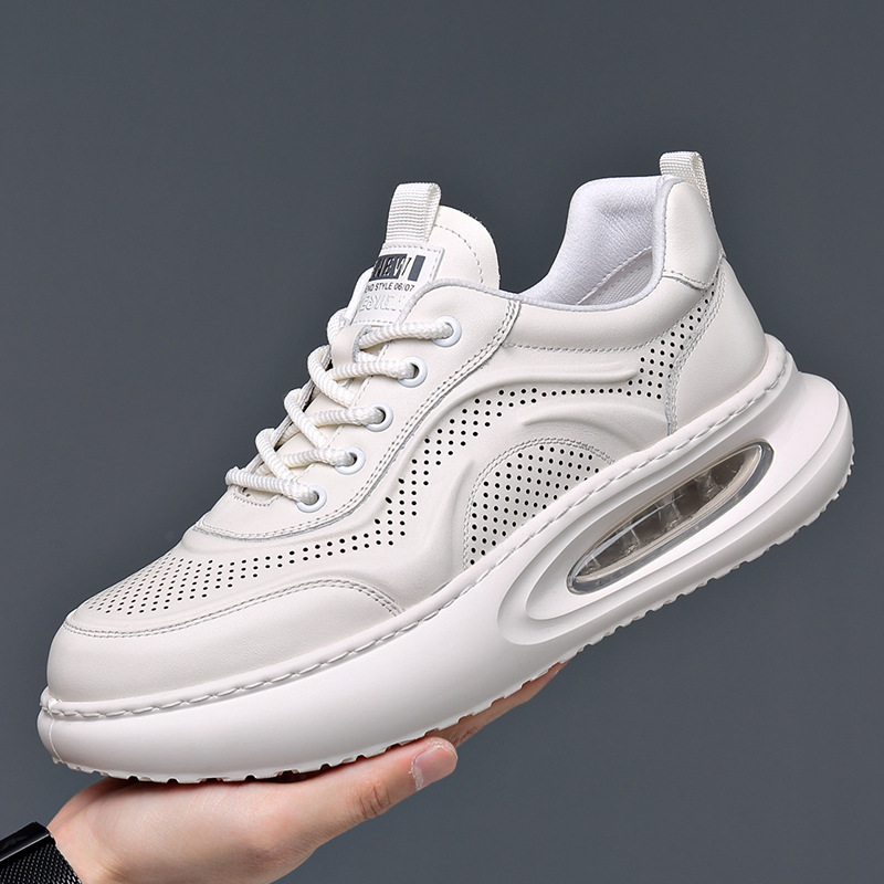 여름 정품 가죽 통기성 화이트 신발 할로우 샌들 홀 신발 남성 신발 에어 쿠션 단독 경량 두꺼운 단독 캐주얼 신발 가죽 신발