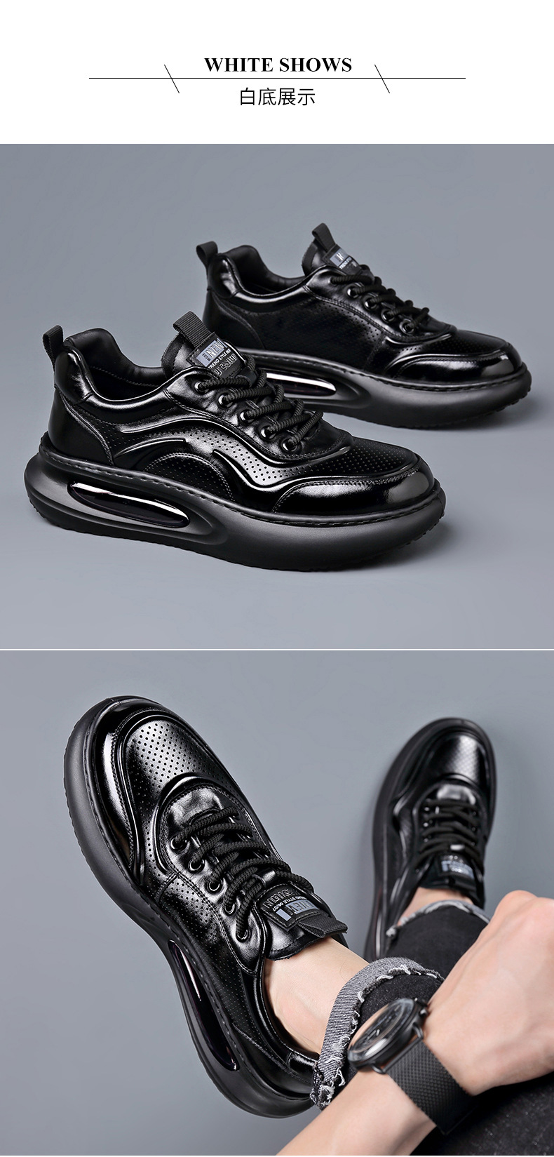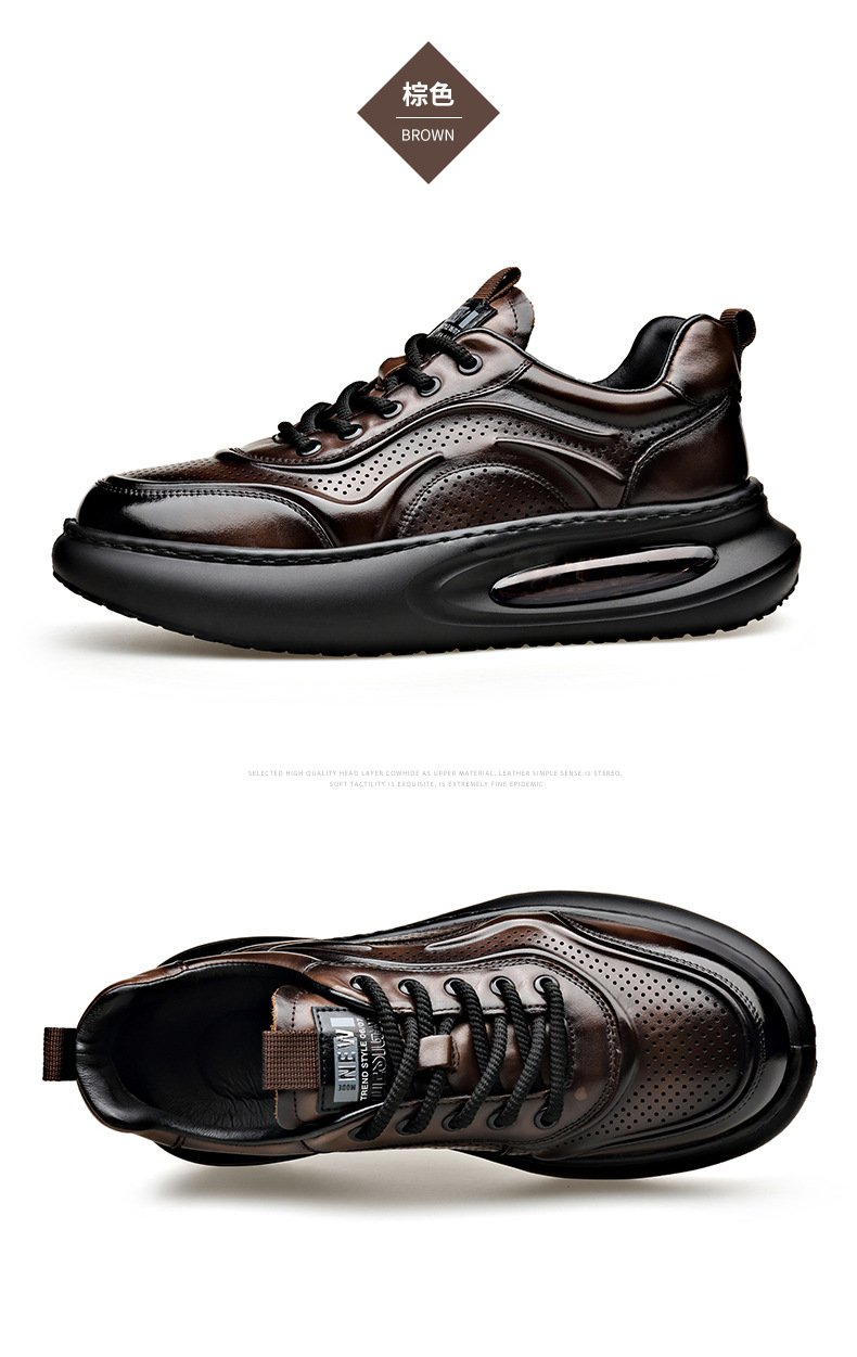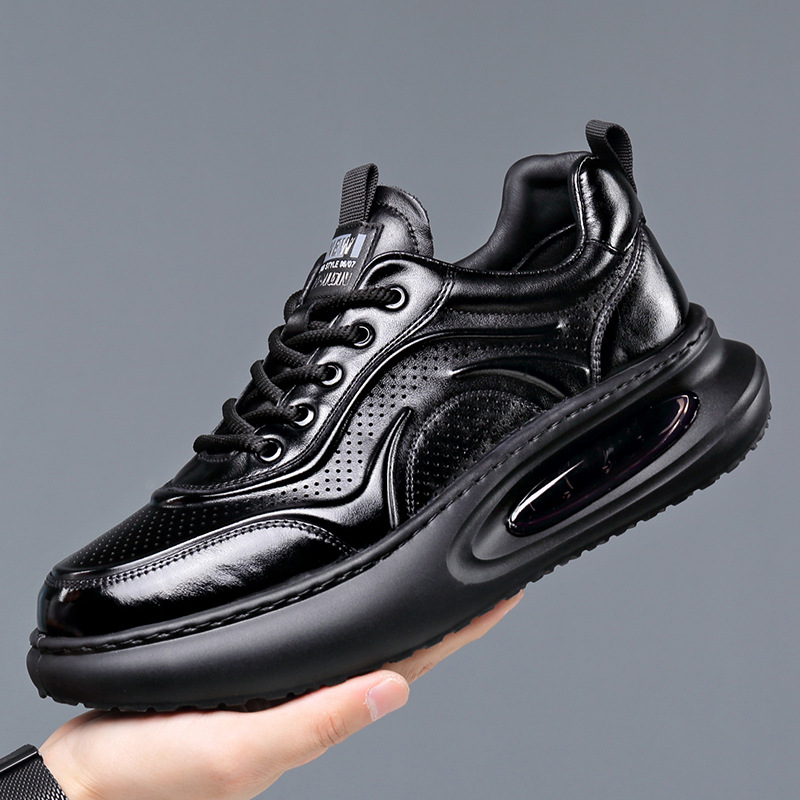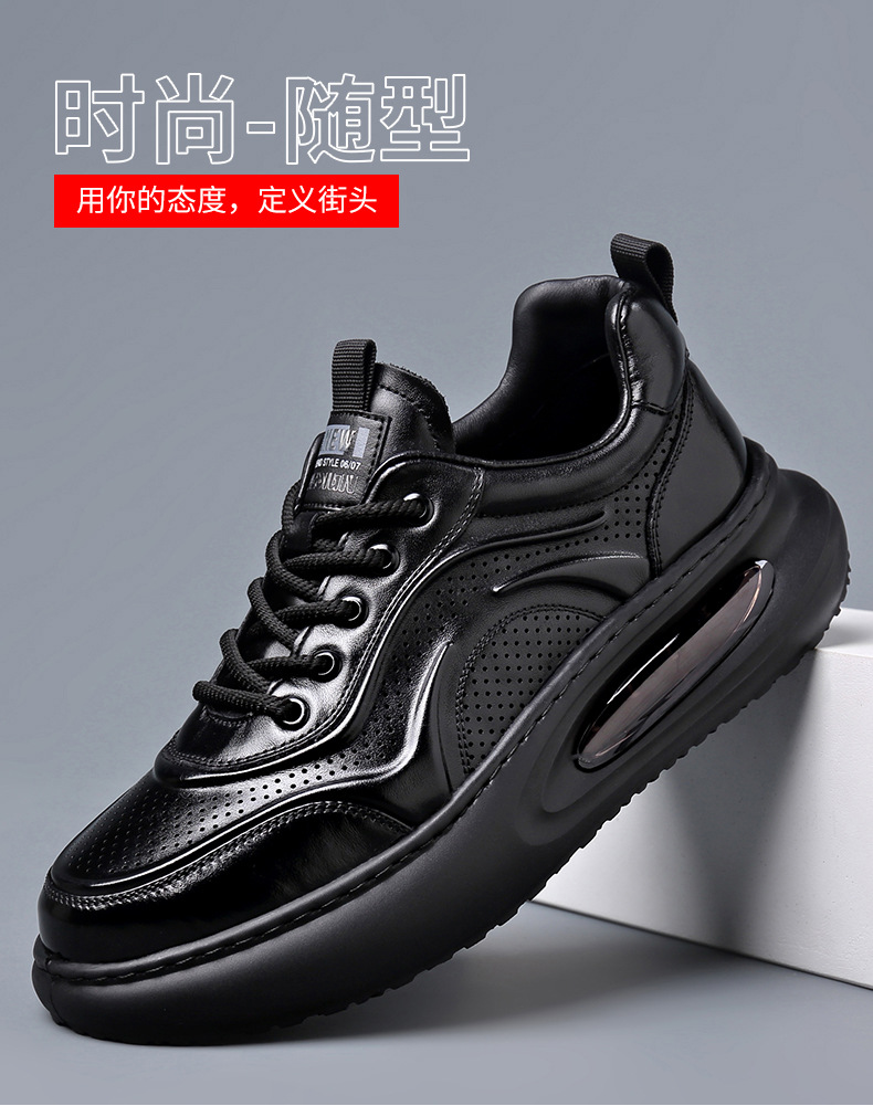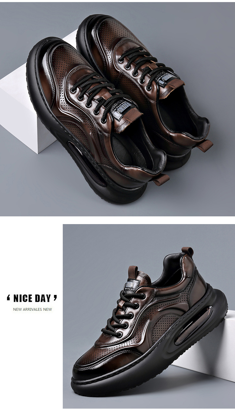여름 정품 가죽 통기성 화이트 신발 할로우 샌들 홀 신발 남성 신발 에어 쿠션 단독 경량 두꺼운 단독 캐주얼 신발 가죽 신발