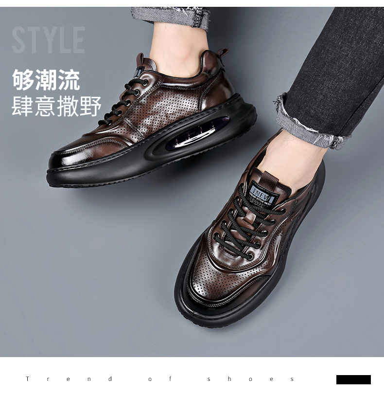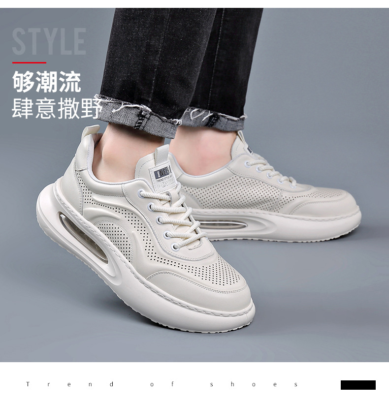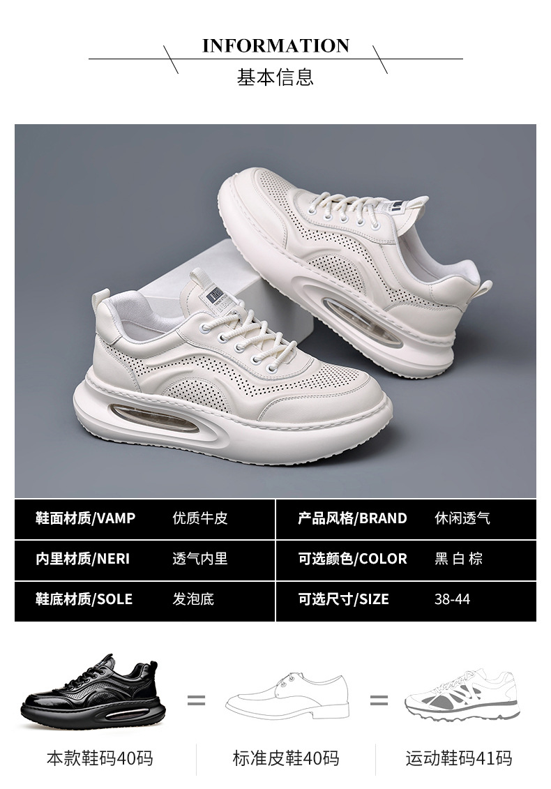 여름 정품 가죽 통기성 화이트 신발 할로우 샌들 홀 신발 남성 신발 에어 쿠션 단독 경량 두꺼운 단독 캐주얼 신발 가죽 신발스토어 가기