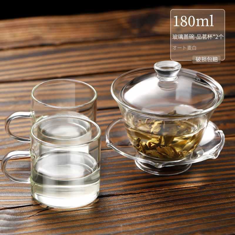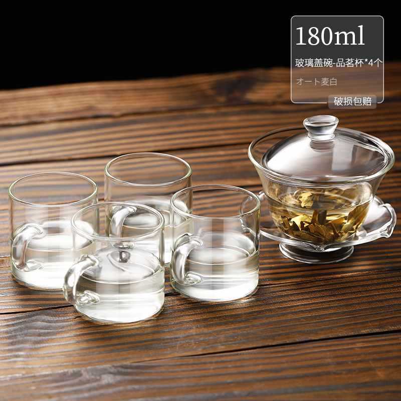 유리 뚜껑 그릇, 찻잔, 쿵푸 차 세트, 두꺼운 투명 찻주전자, 가정용 수제 대형 차 그릇스토어 가기