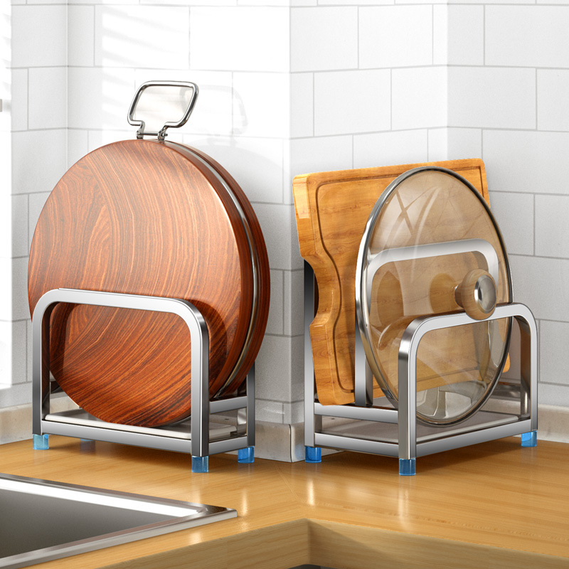 304 스테인레스 스틸 주방 냄비 커버 보관 랙 다기능 도마 보드 나이프는 비 드릴링 테이블 저장 선반을 보유합니다.스토어 가기