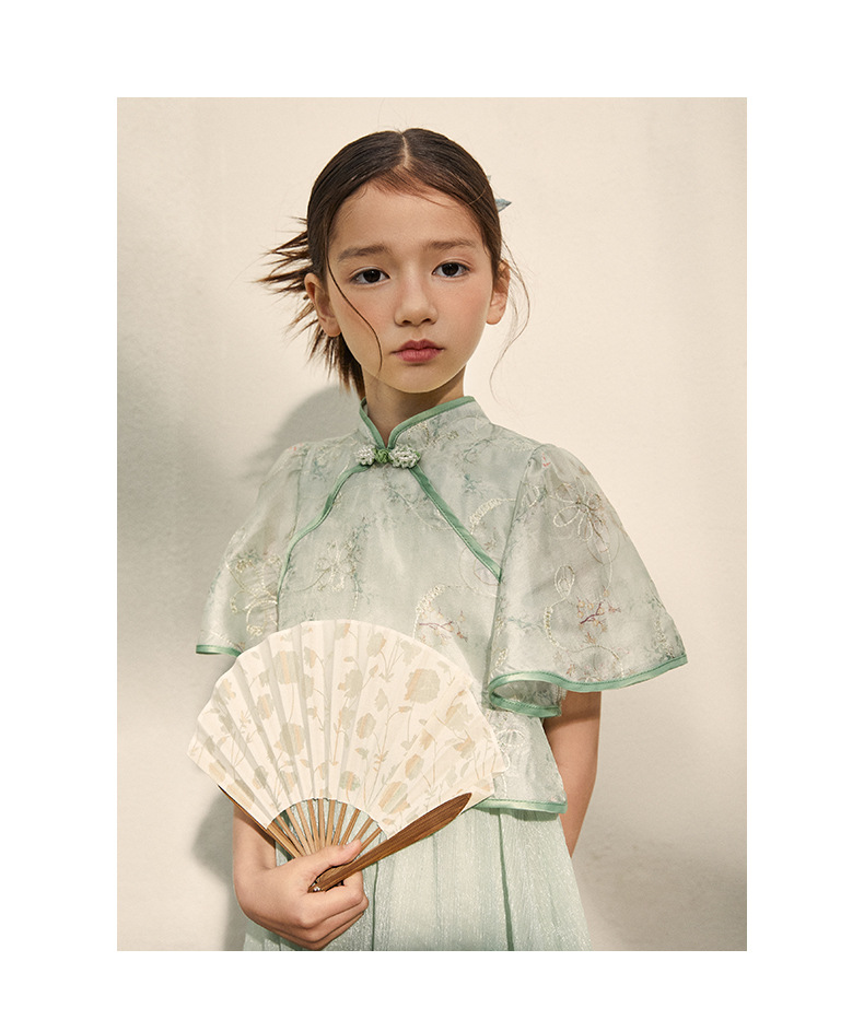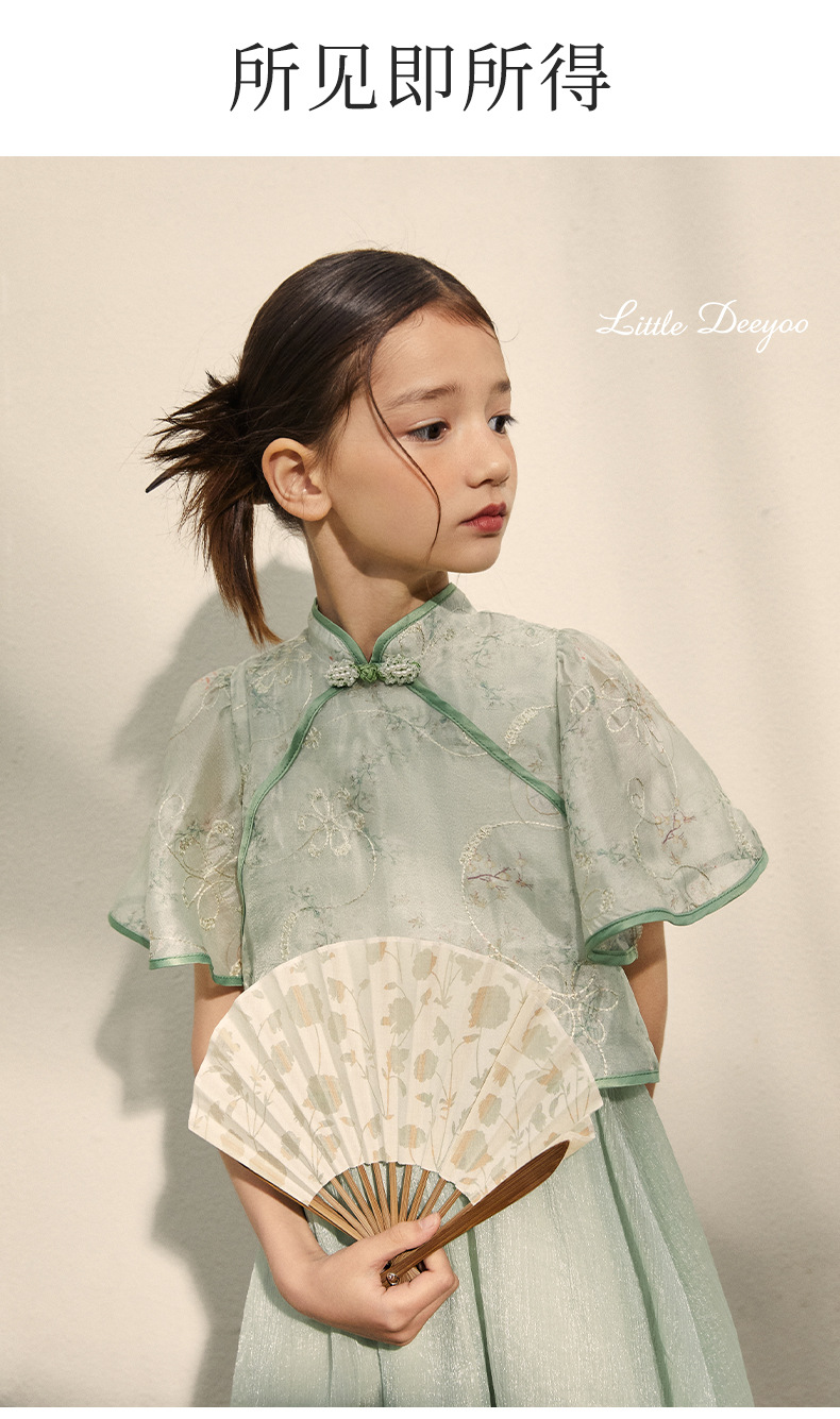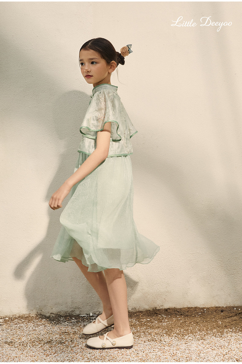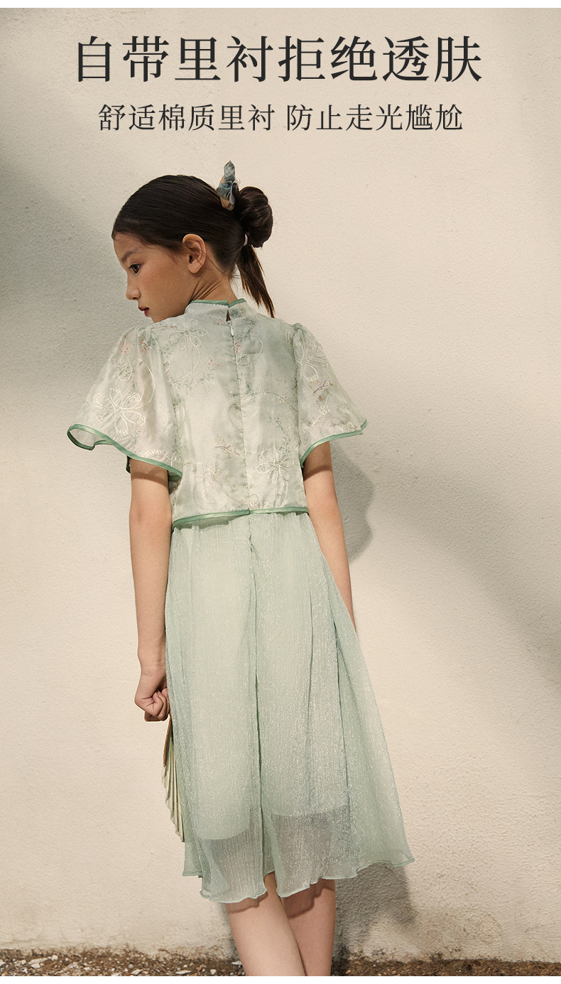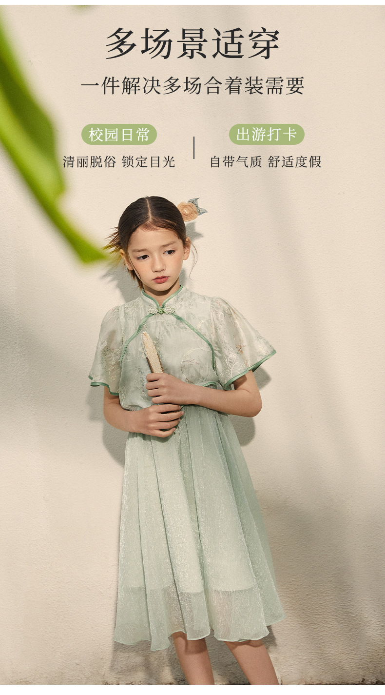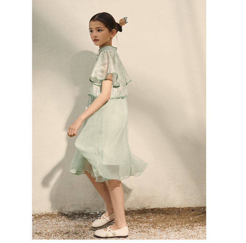 2025년 여름 신작 여아용 한복 드레스, 큰 어린이를 위한 새로운 중국 스타일의 중국 스타일 어린이 반팔 가짜 투피스 스커트