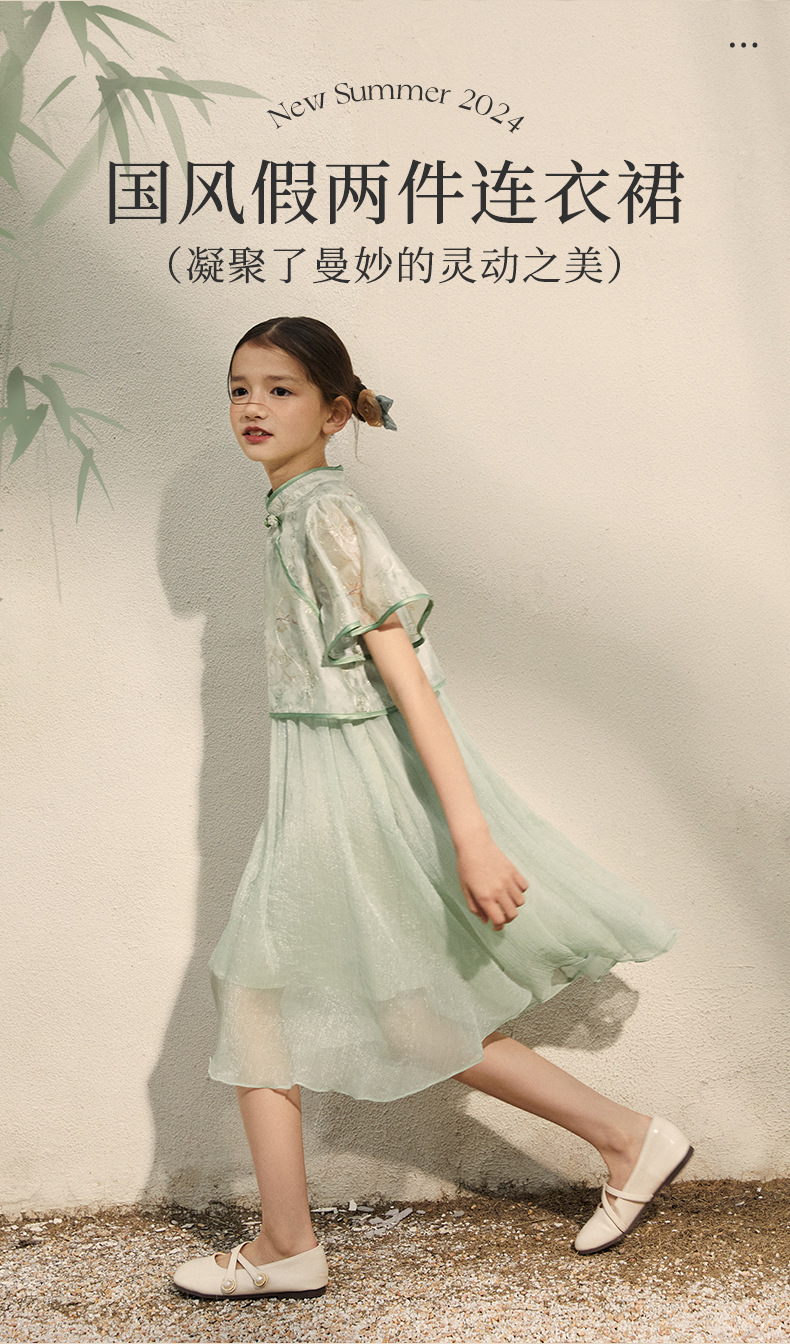 2025년 여름 신작 여아용 한복 드레스, 큰 어린이를 위한 새로운 중국 스타일의 중국 스타일 어린이 반팔 가짜 투피스 스커트스토어 가기