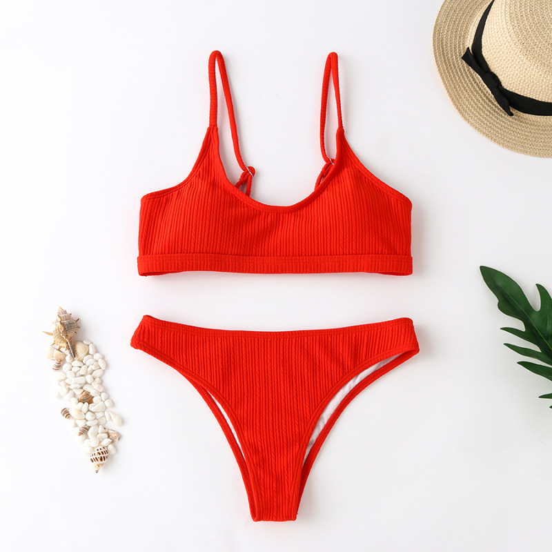 비키니 2022 새로운 수영복 도매 섹시한 비키니 단색 패션 여성 수영복 분할 비키니 여성