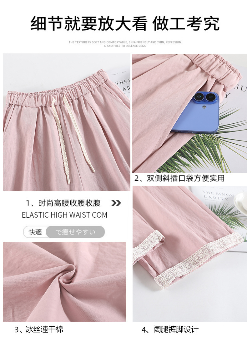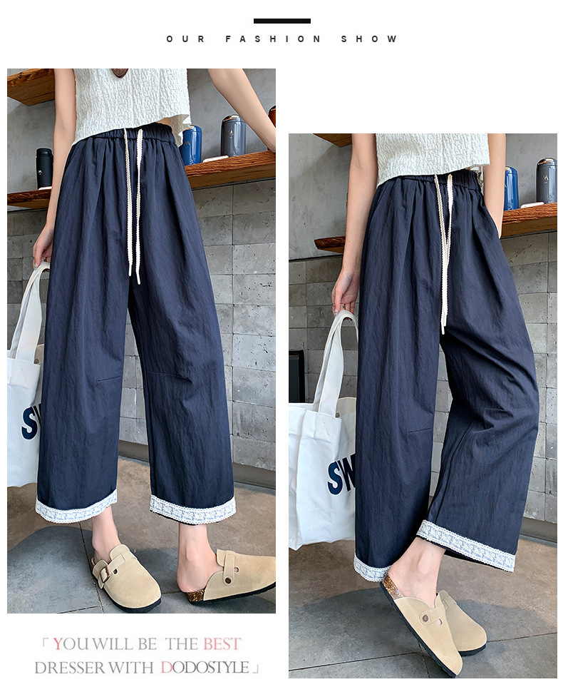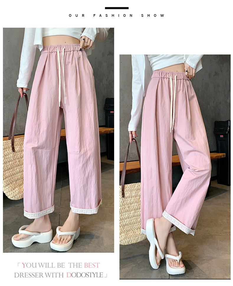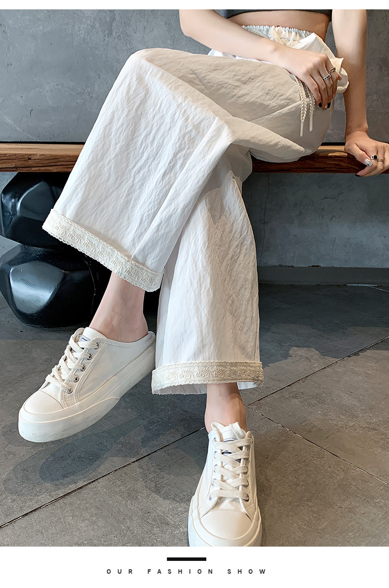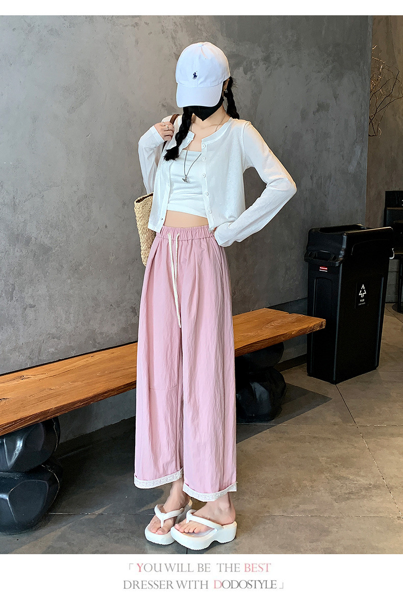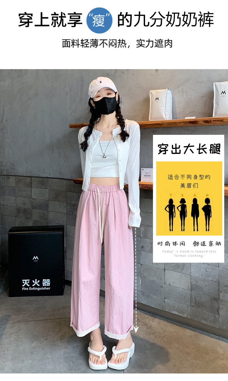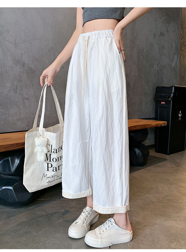 아름다운 레이스 트림 와이드 레그 바지 여성용 2025 여름 얇은 풍선 바지 엉덩이 커버 슬리밍 할머니 바지스토어 가기