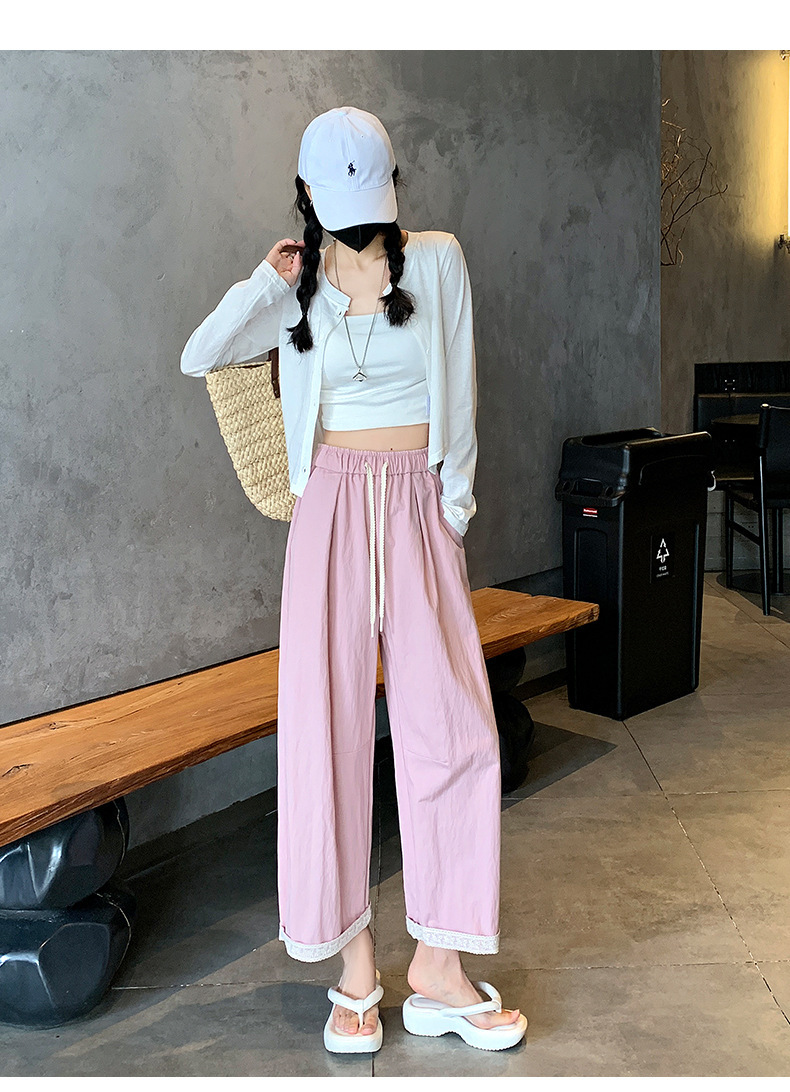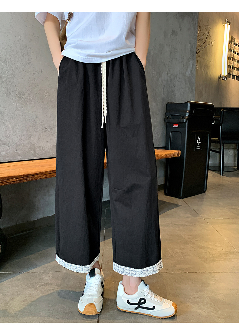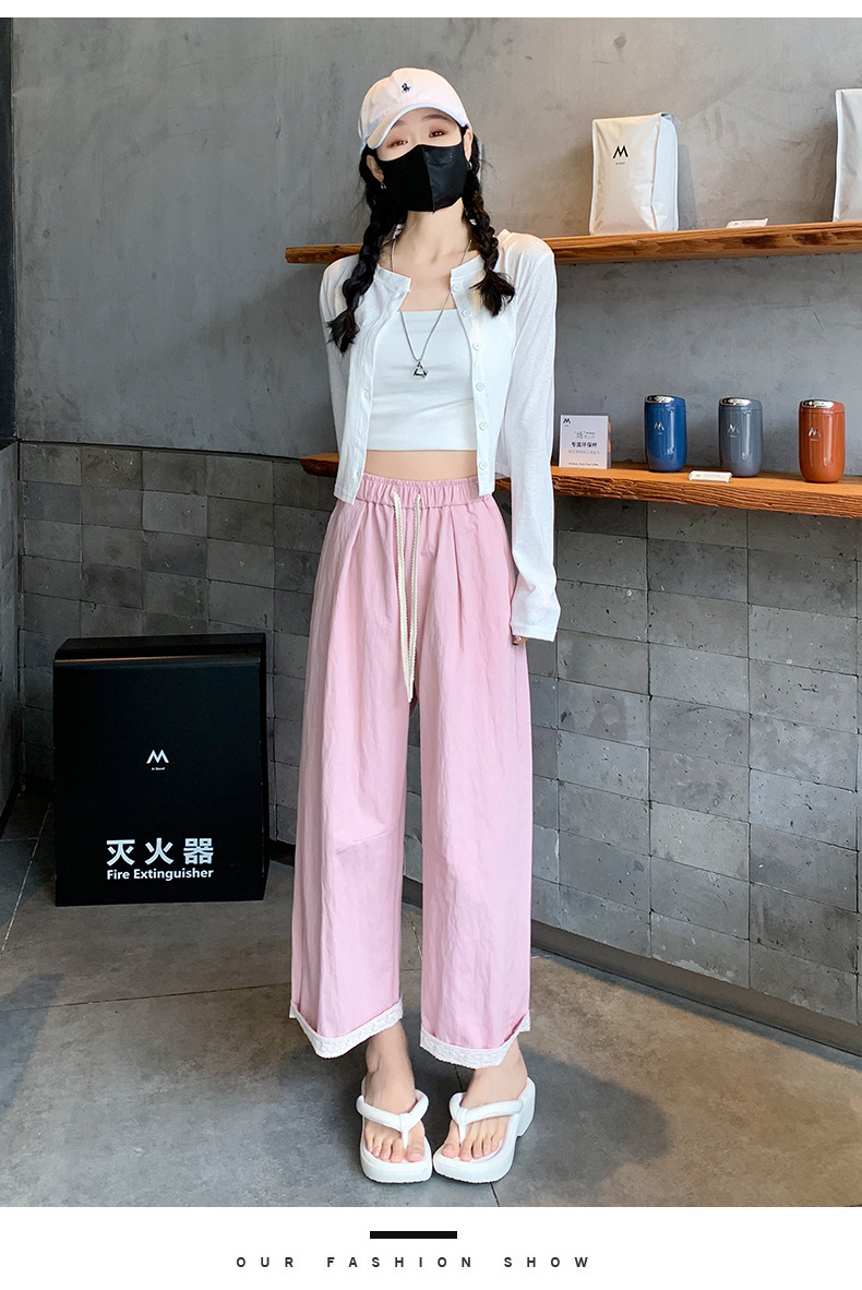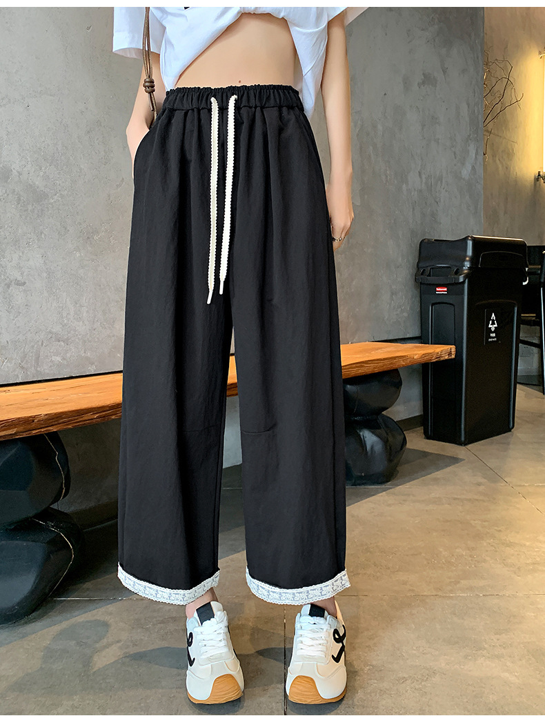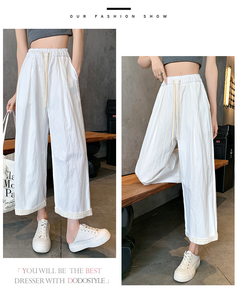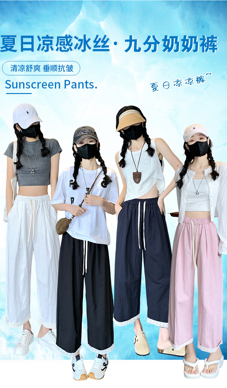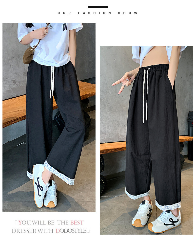 아름다운 레이스 트림 와이드 레그 바지 여성용 2025 여름 얇은 풍선 바지 엉덩이 커버 슬리밍 할머니 바지스토어 가기