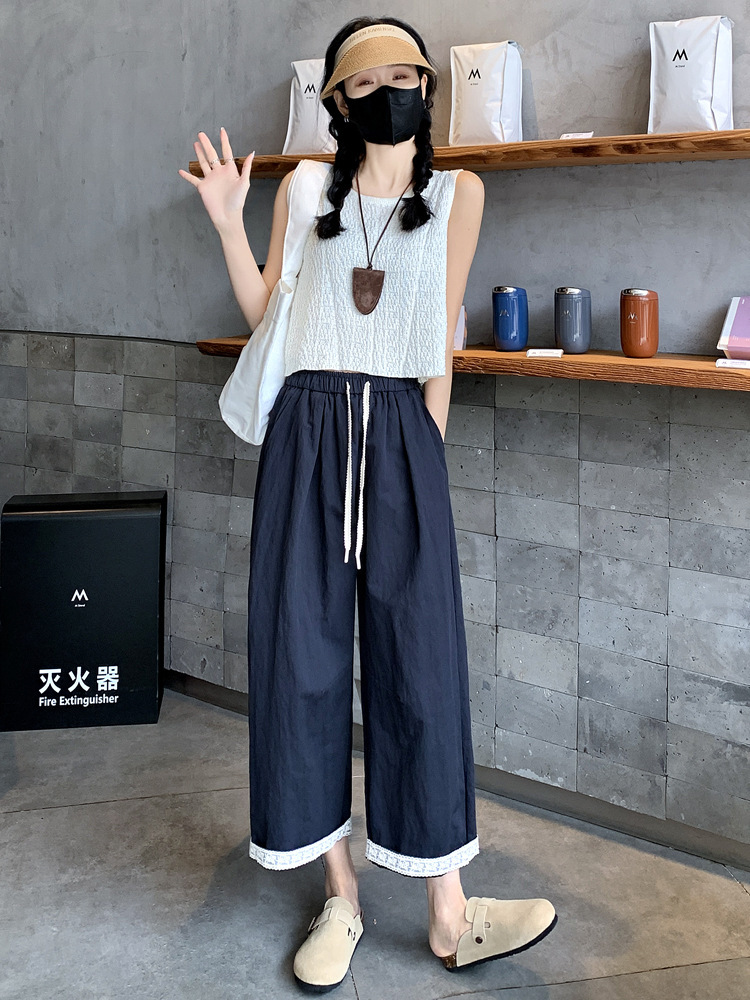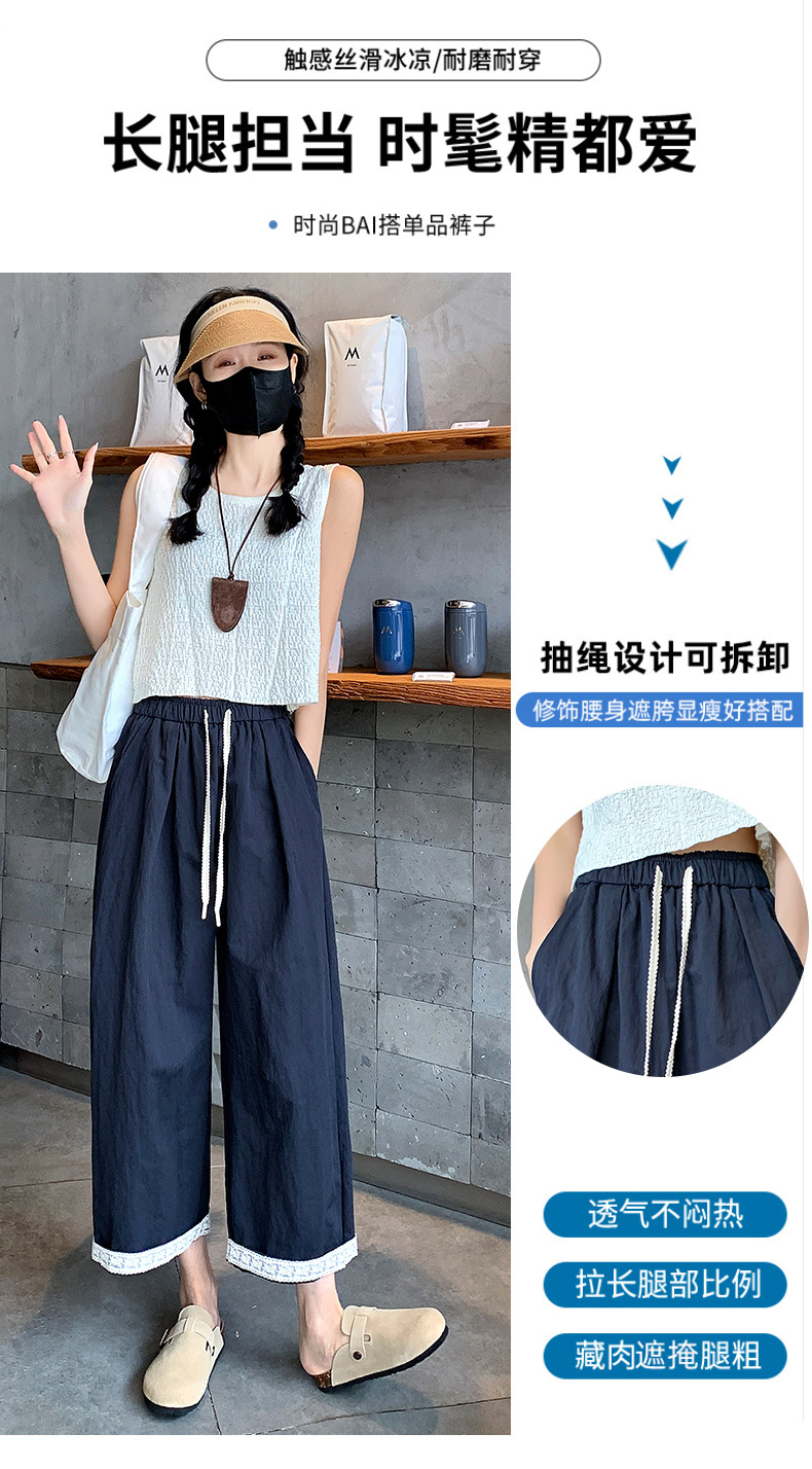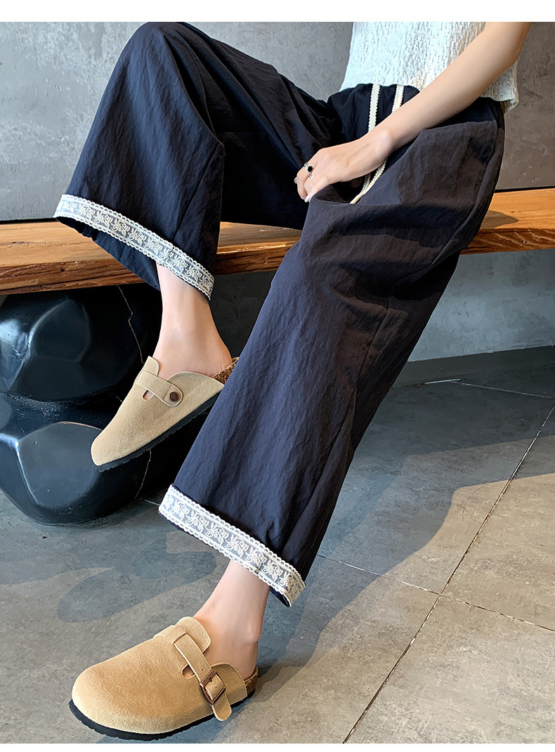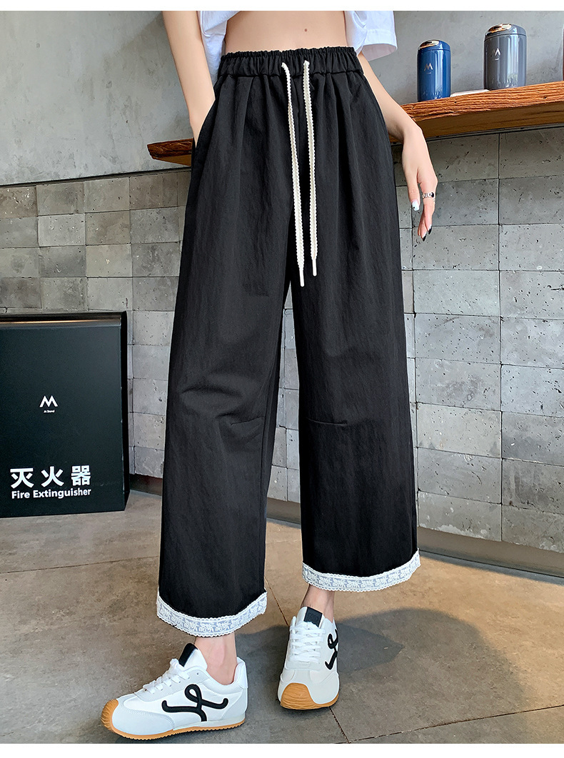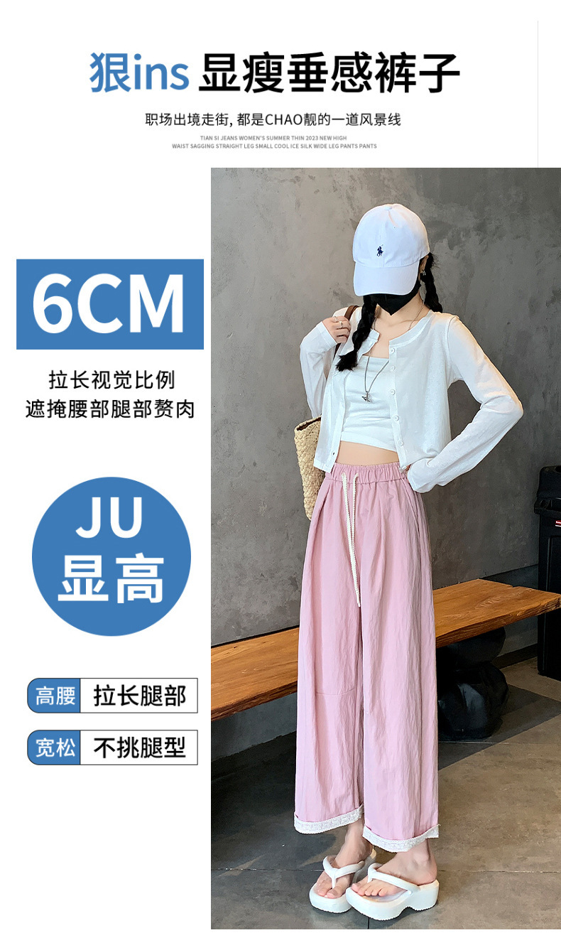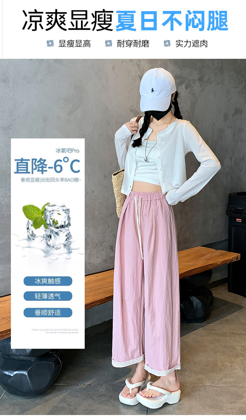 아름다운 레이스 트림 와이드 레그 바지 여성용 2025 여름 얇은 풍선 바지 엉덩이 커버 슬리밍 할머니 바지스토어 가기