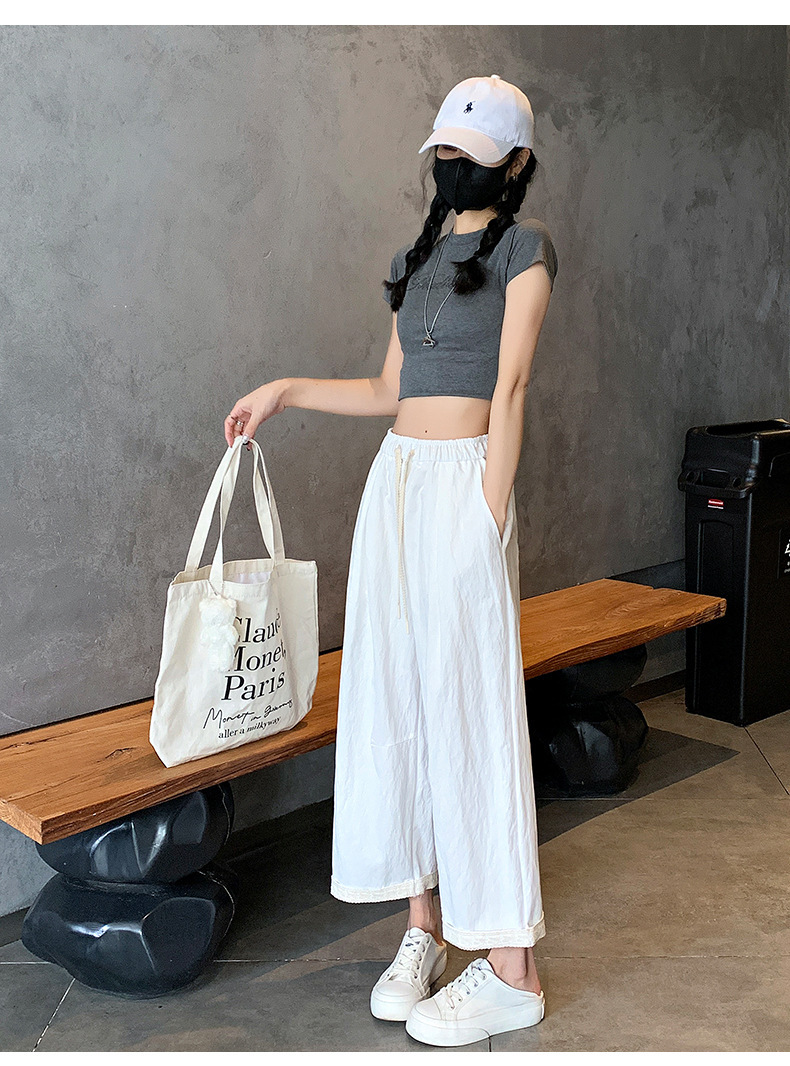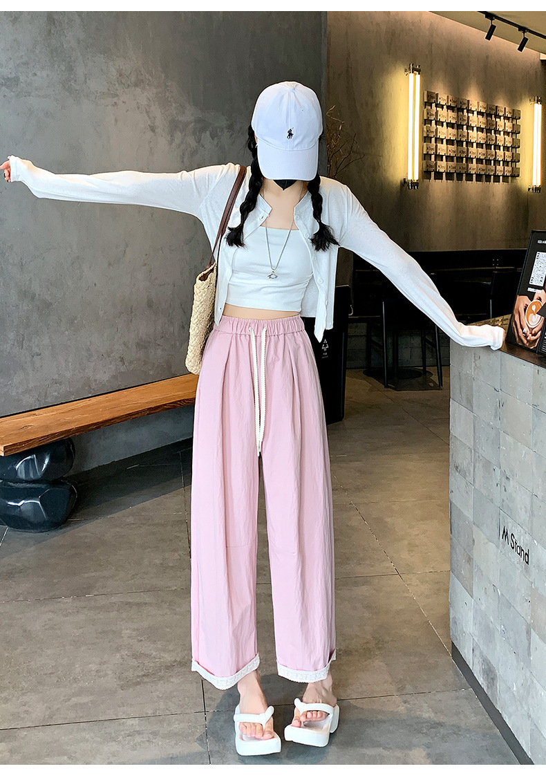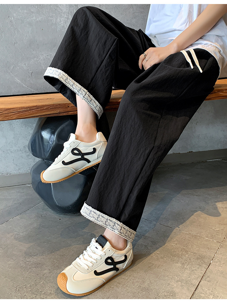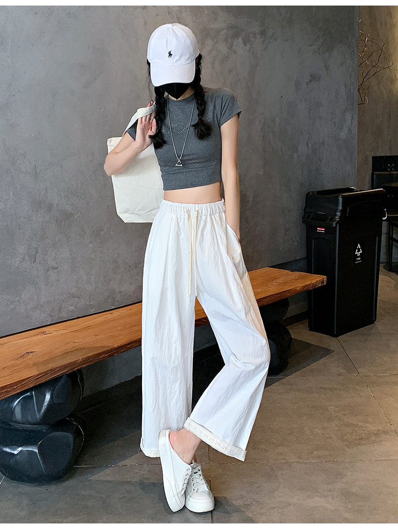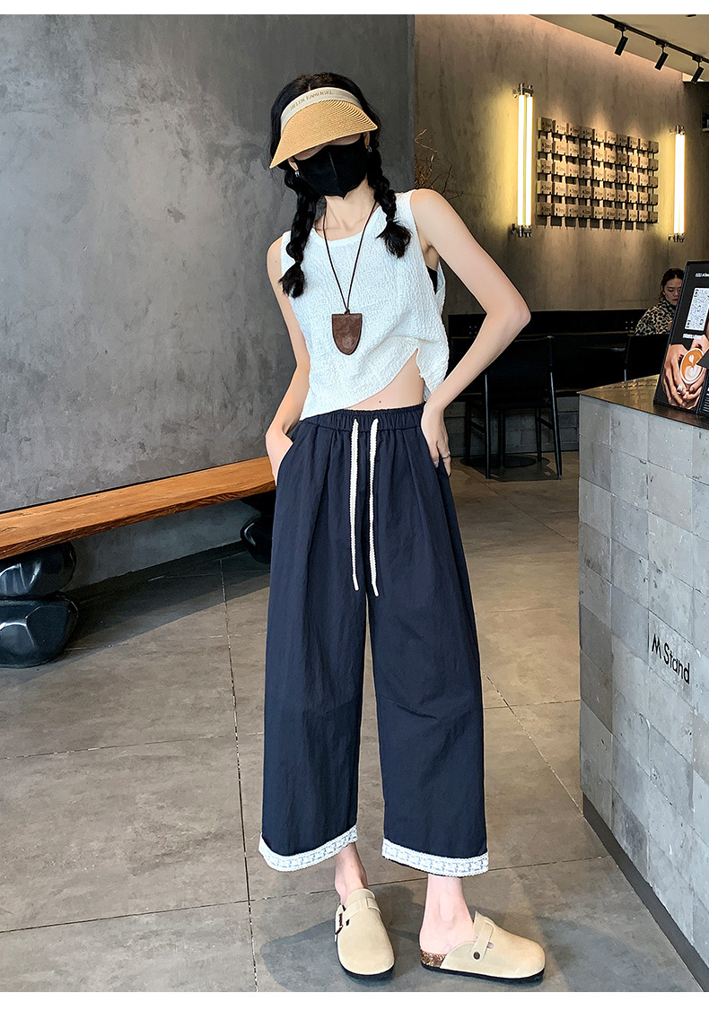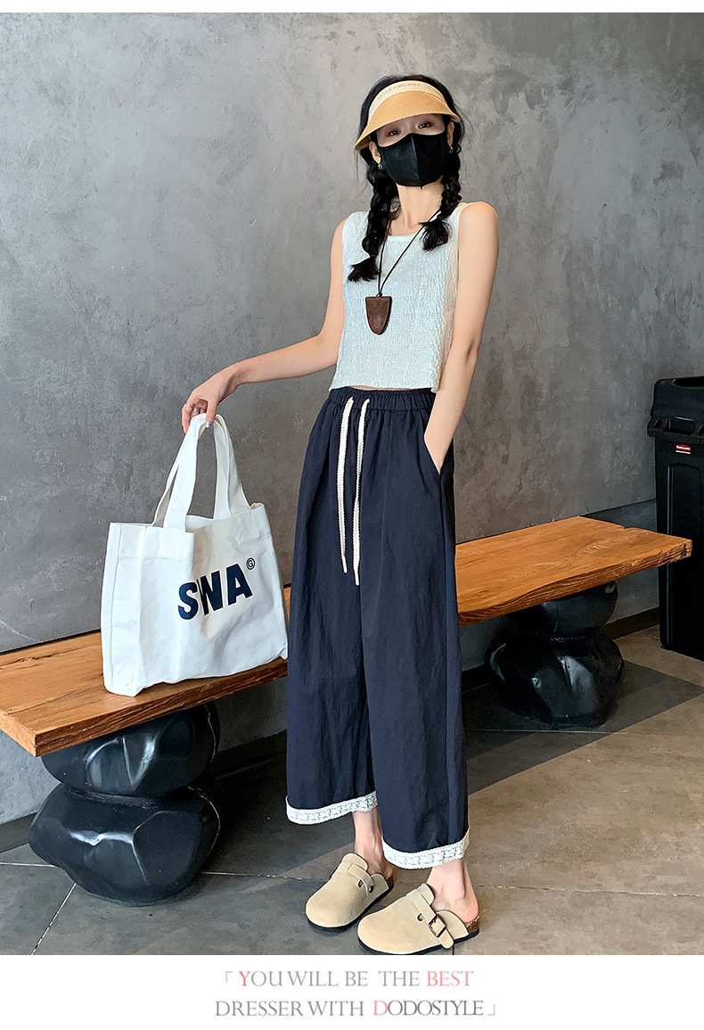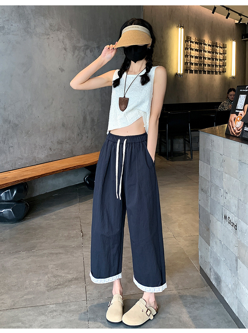 아름다운 레이스 트림 와이드 레그 바지 여성용 2025 여름 얇은 풍선 바지 엉덩이 커버 슬리밍 할머니 바지스토어 가기
