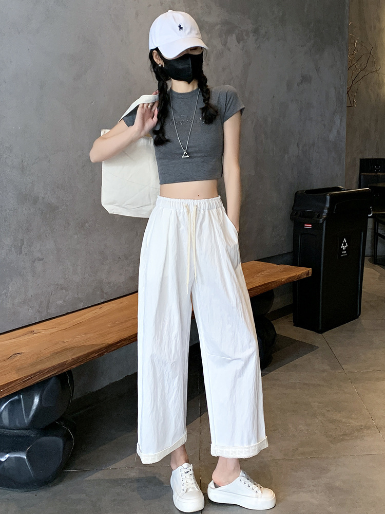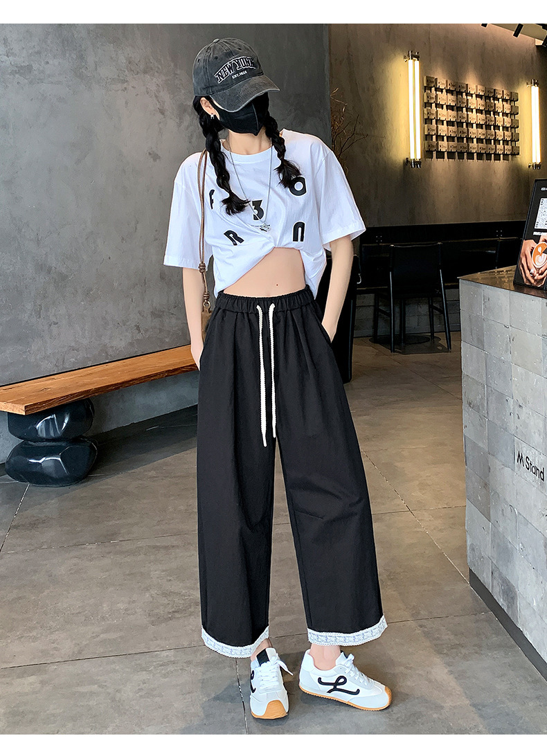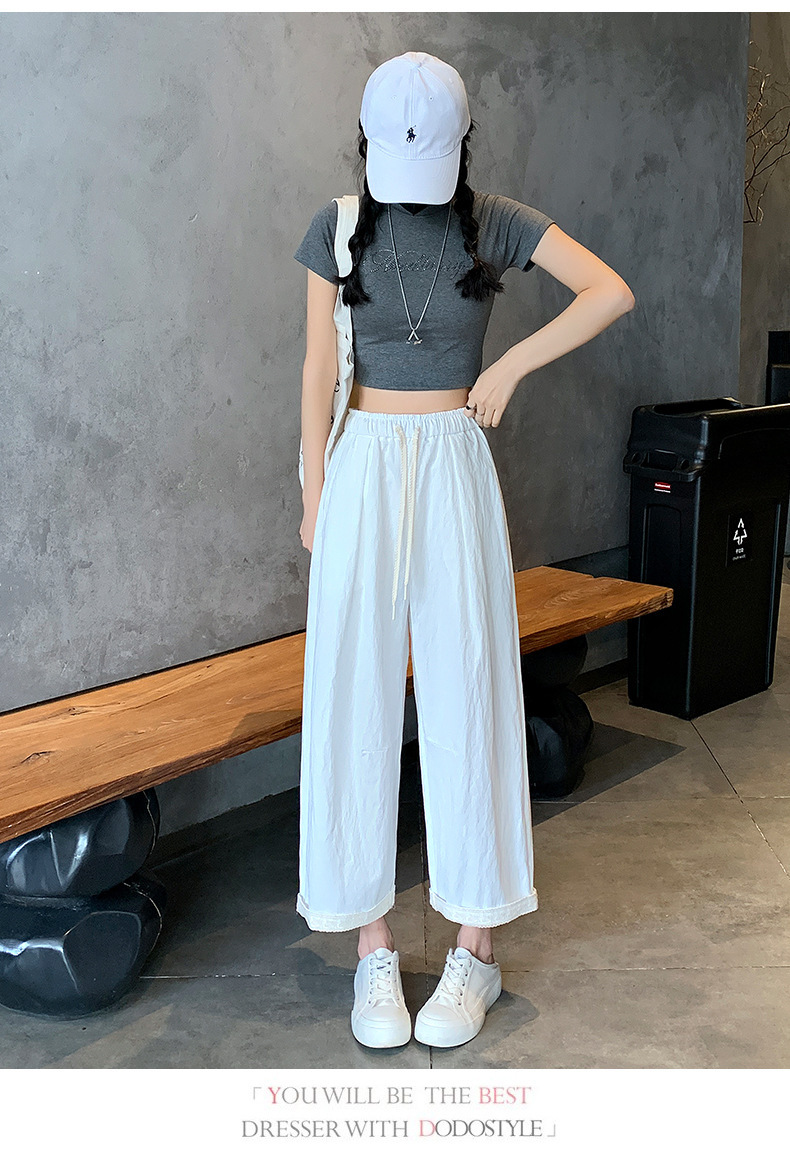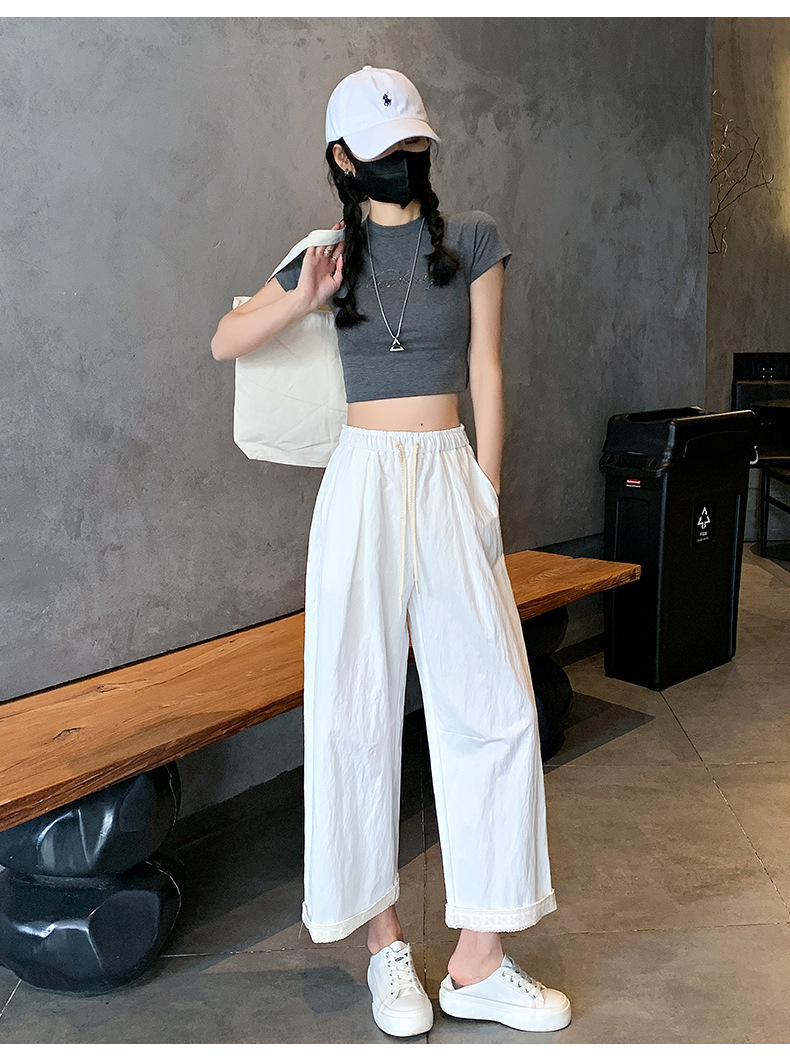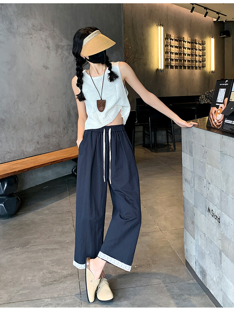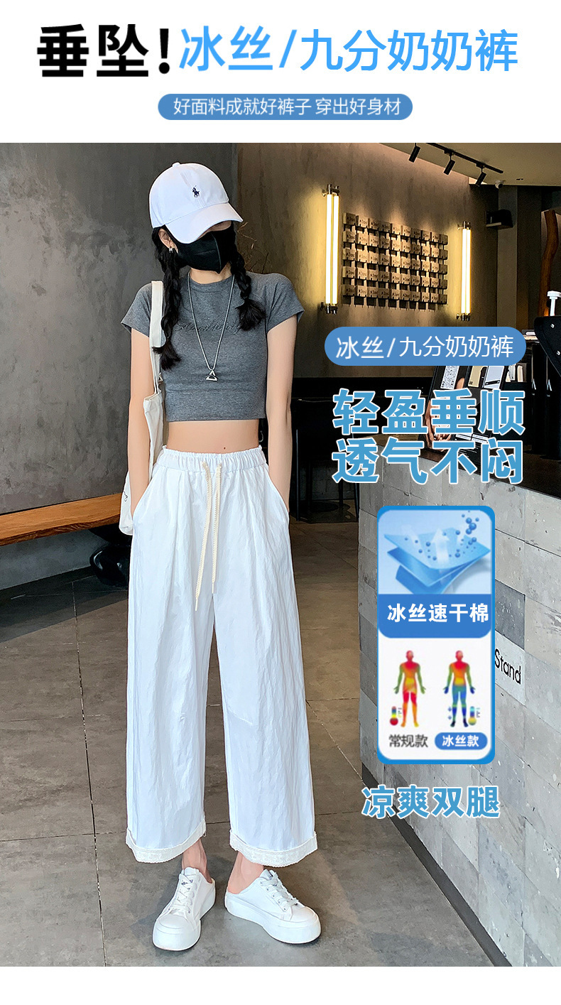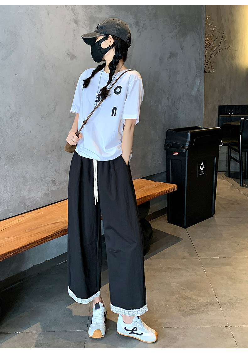 아름다운 레이스 트림 와이드 레그 바지 여성용 2025 여름 얇은 풍선 바지 엉덩이 커버 슬리밍 할머니 바지스토어 가기