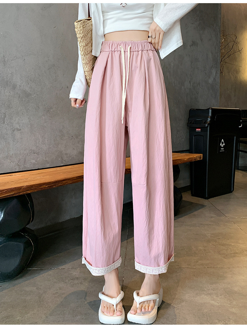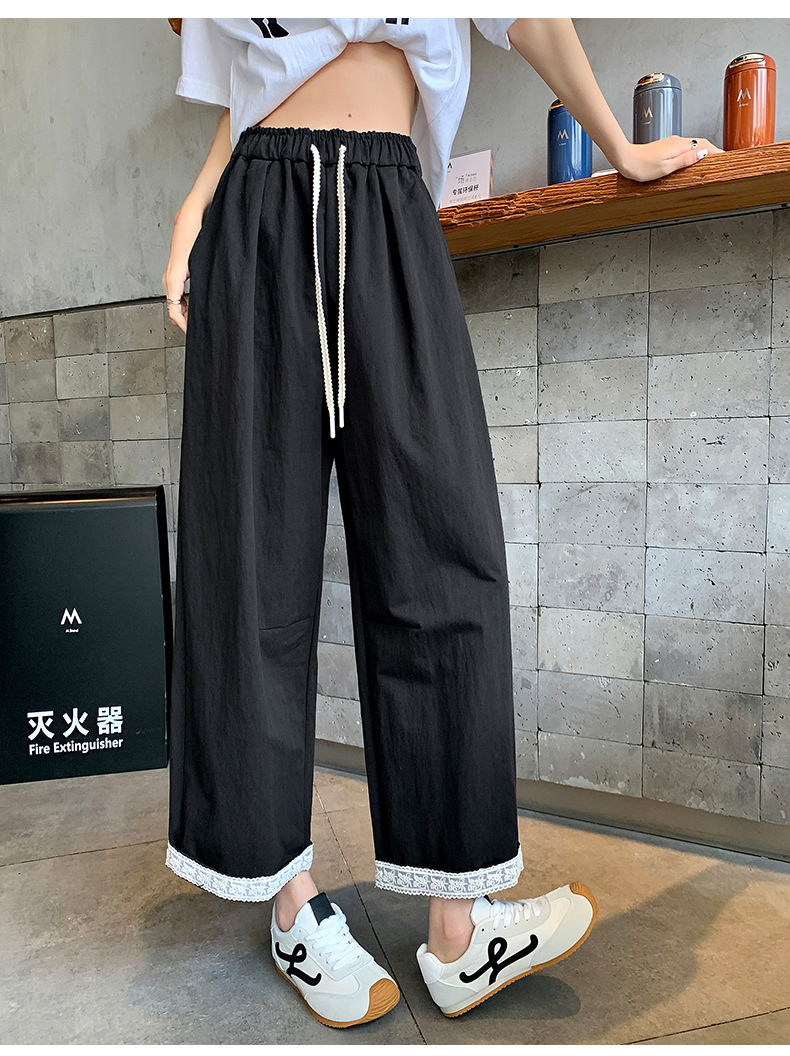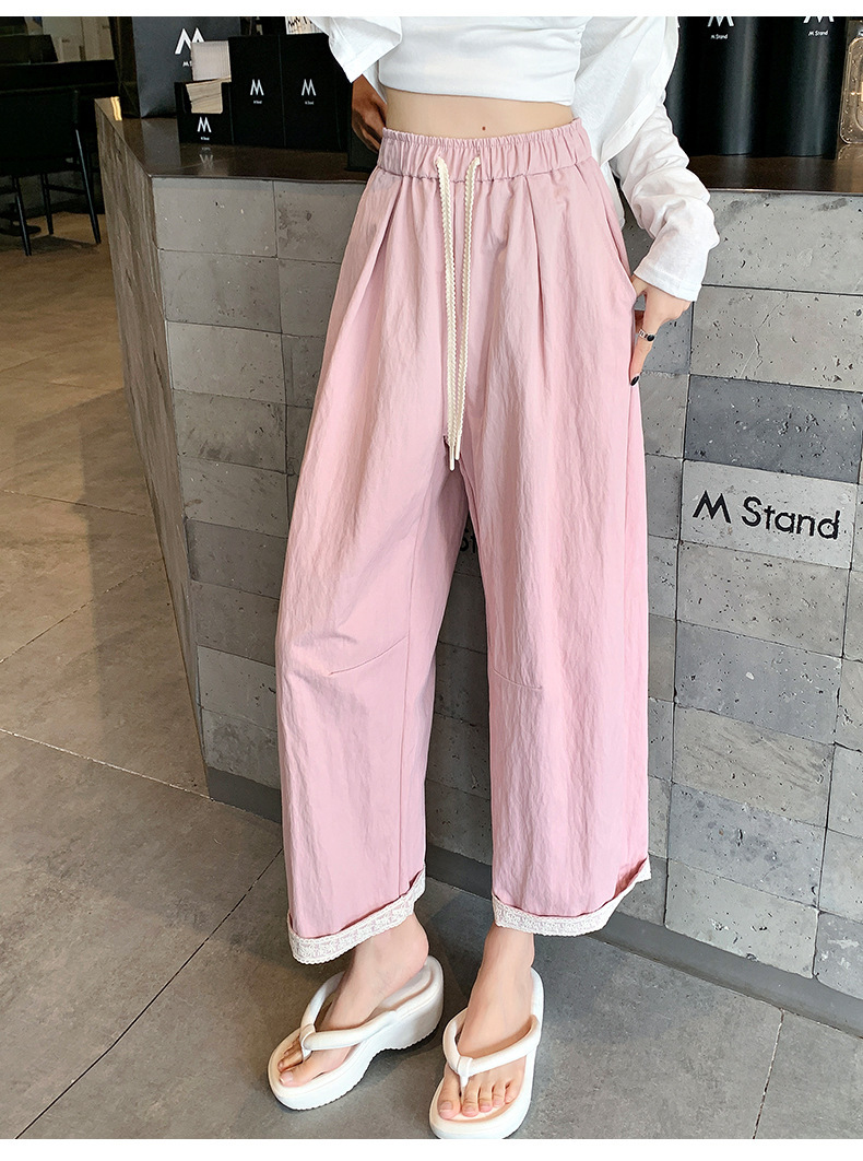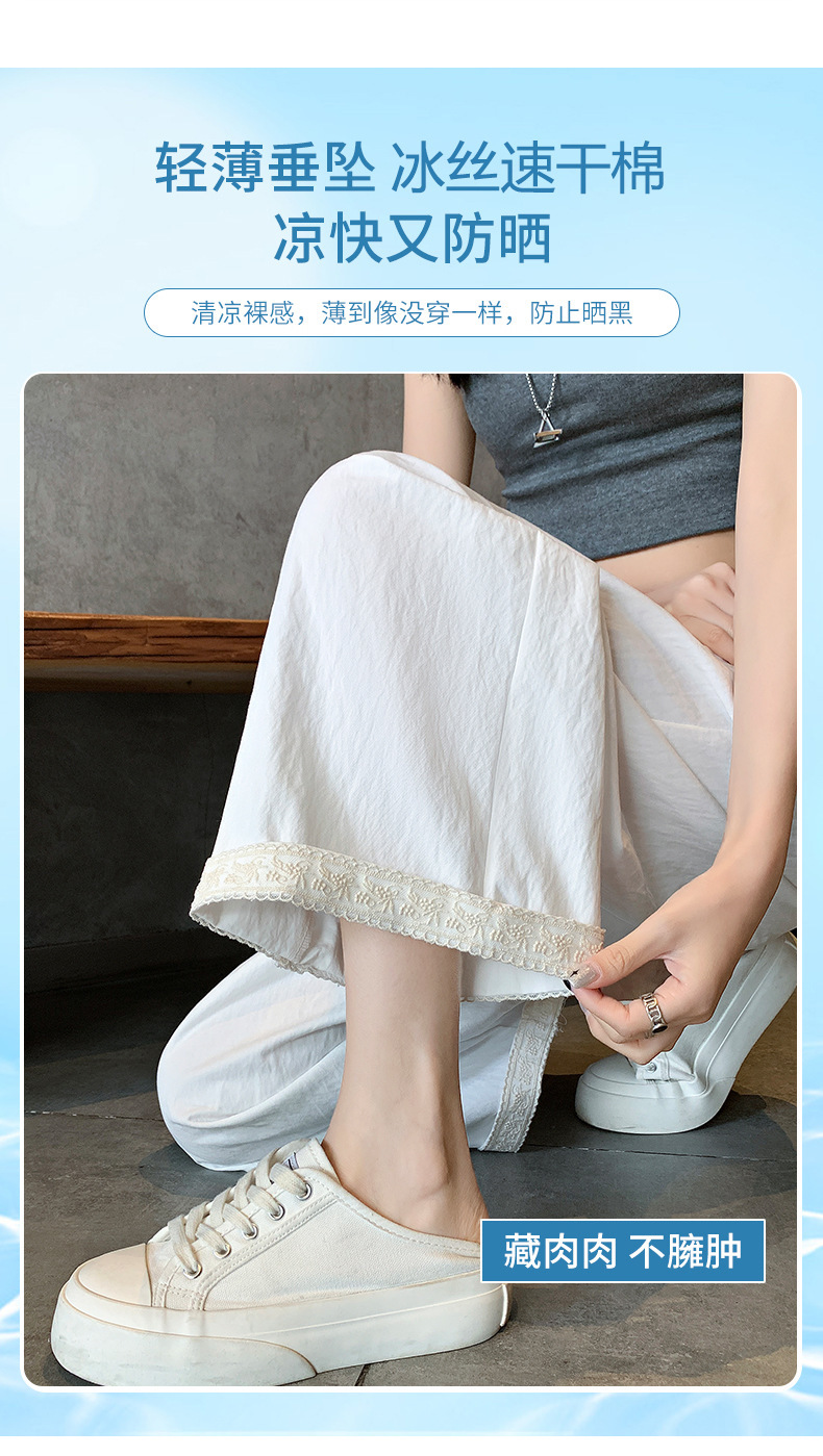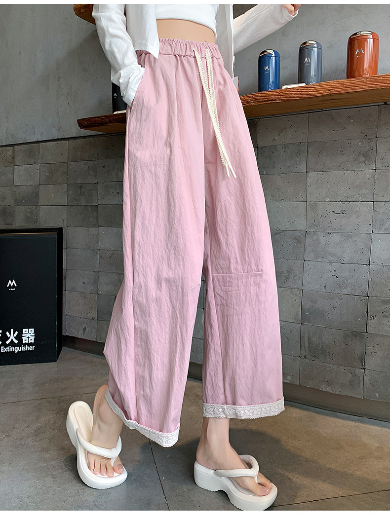 아름다운 레이스 트림 와이드 레그 바지 여성용 2025 여름 얇은 풍선 바지 엉덩이 커버 슬리밍 할머니 바지