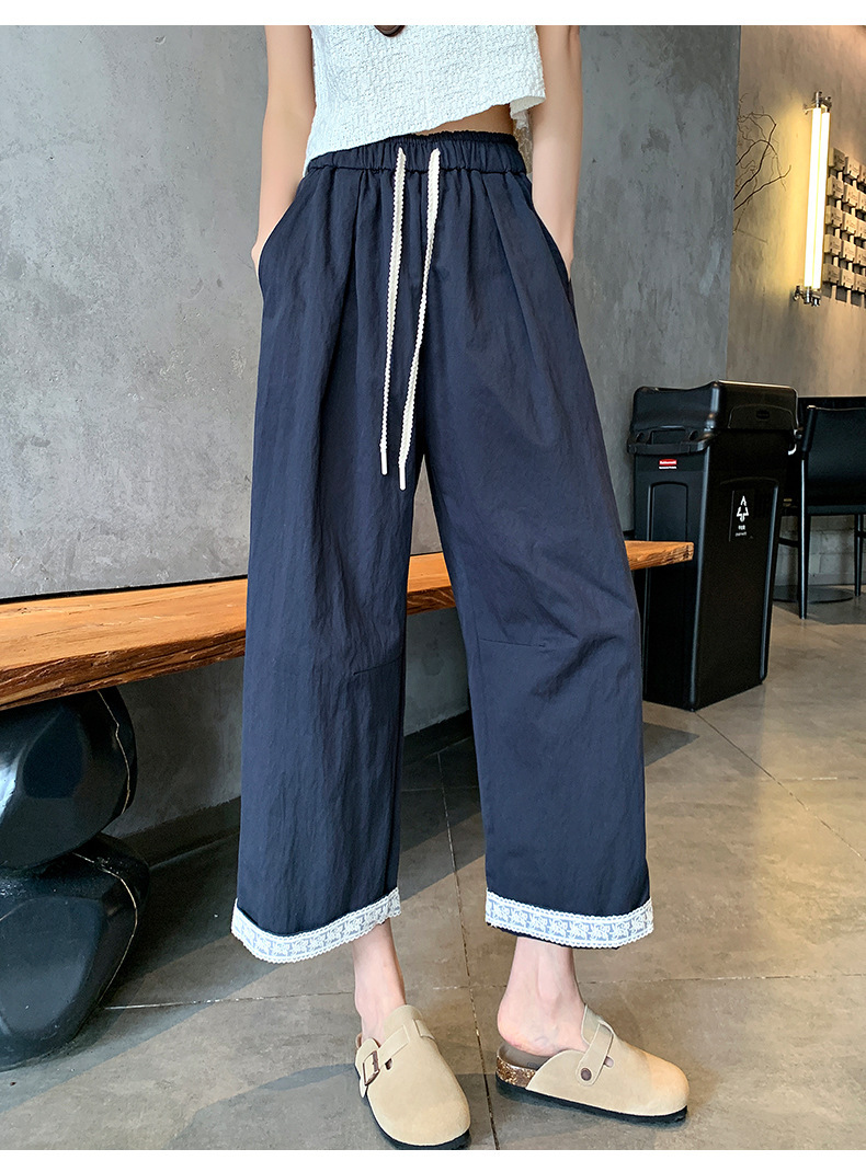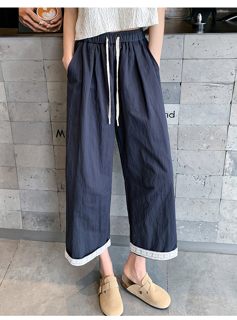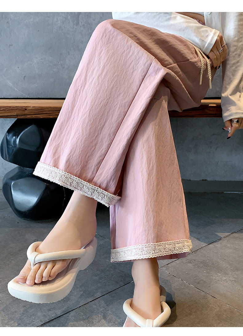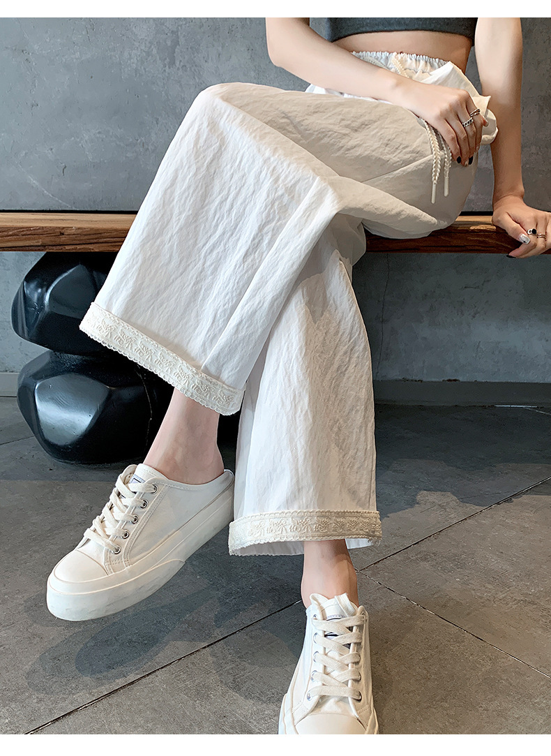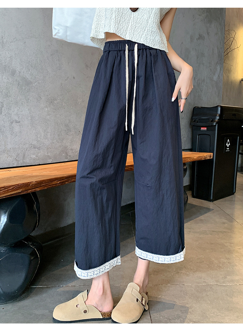 아름다운 레이스 트림 와이드 레그 바지 여성용 2025 여름 얇은 풍선 바지 엉덩이 커버 슬리밍 할머니 바지