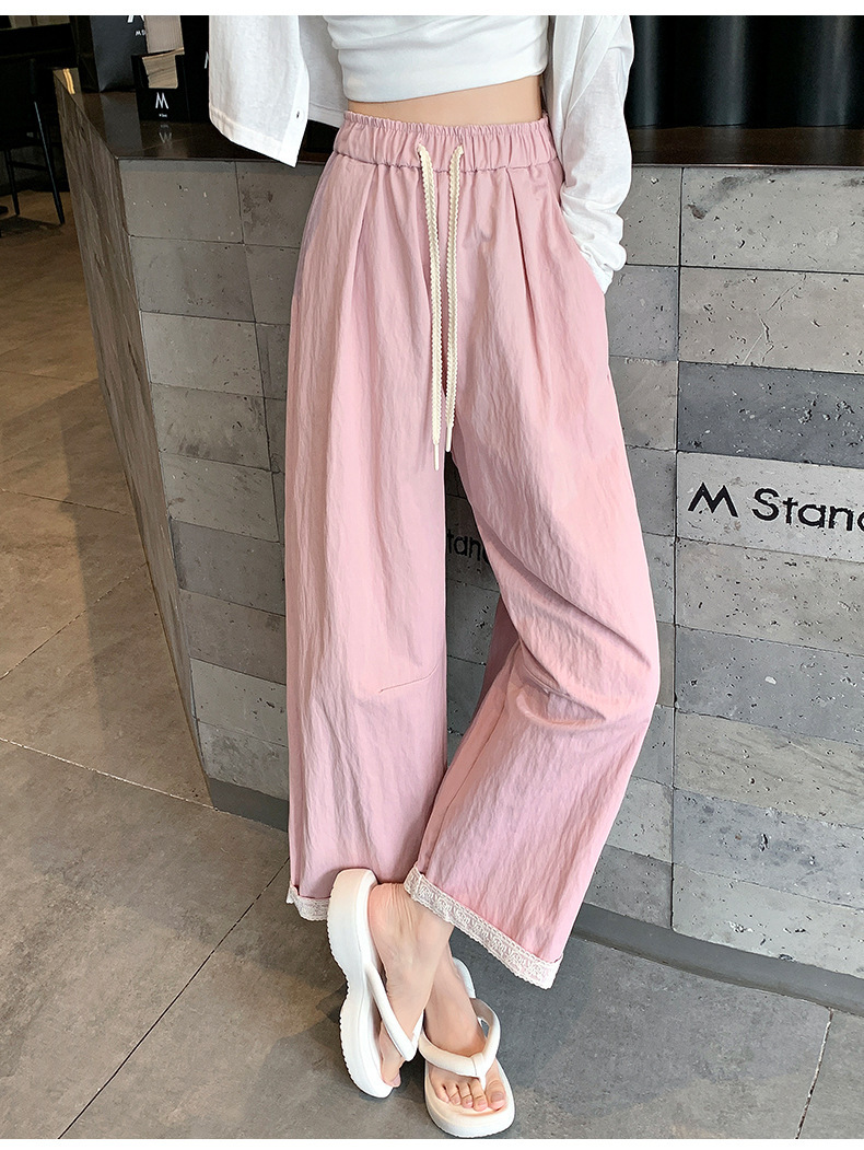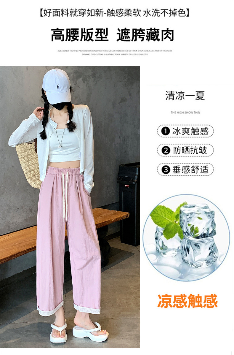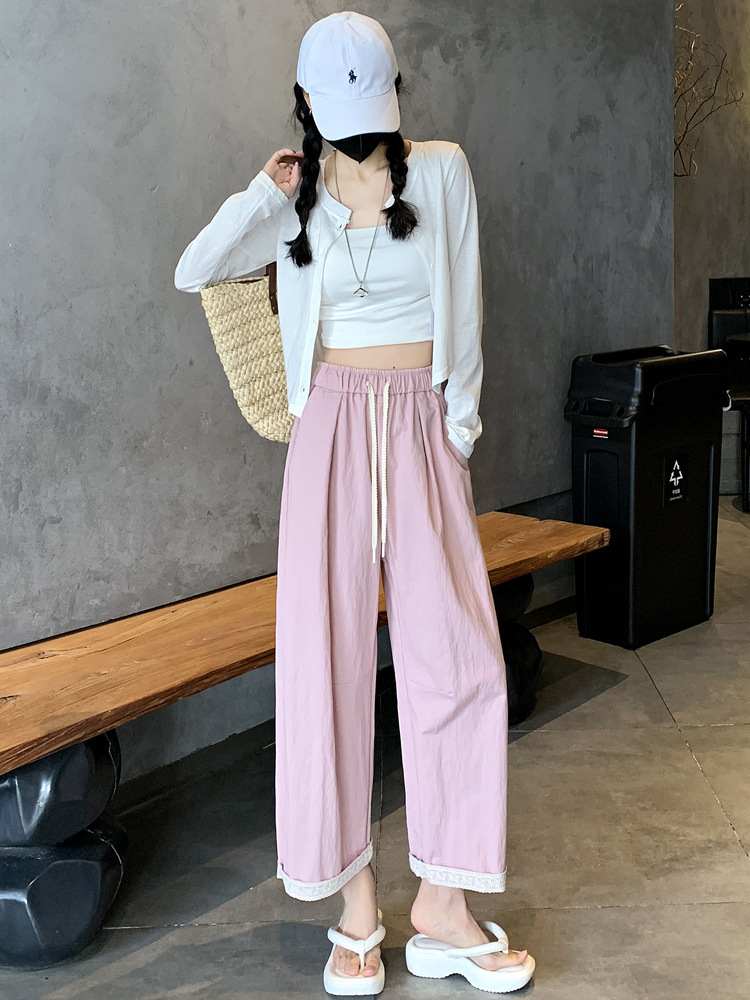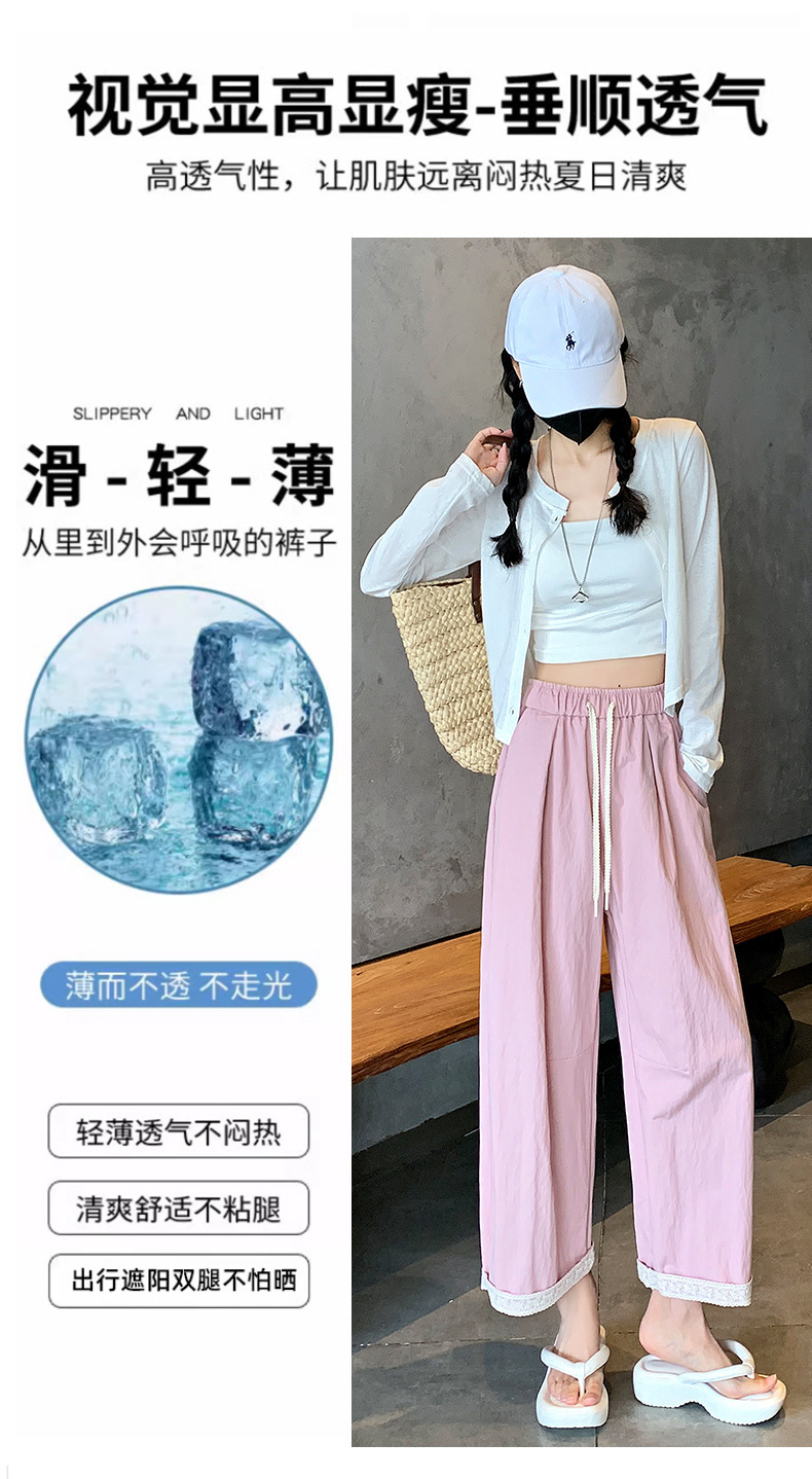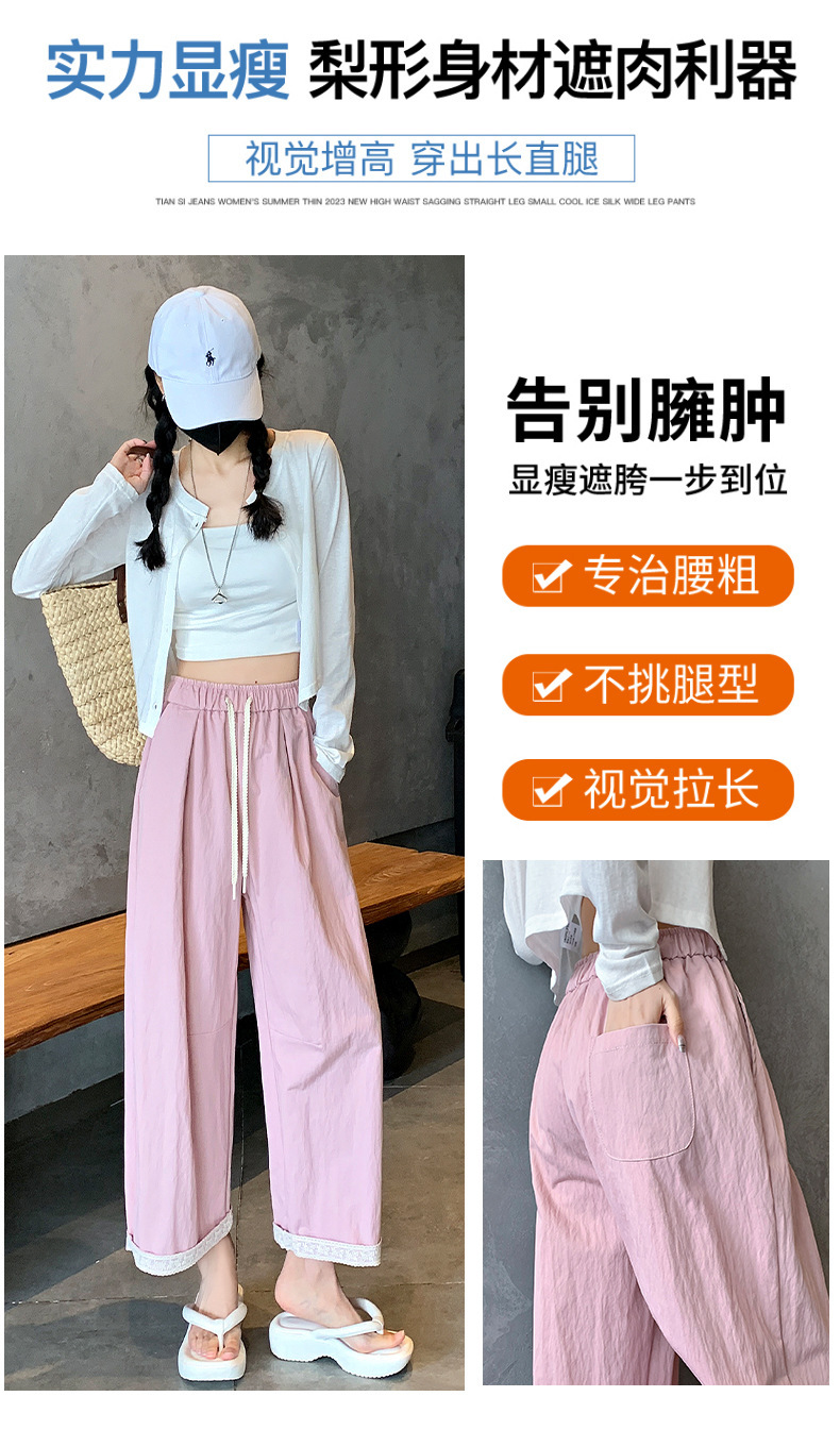 아름다운 레이스 트림 와이드 레그 바지 여성용 2025 여름 얇은 풍선 바지 엉덩이 커버 슬리밍 할머니 바지