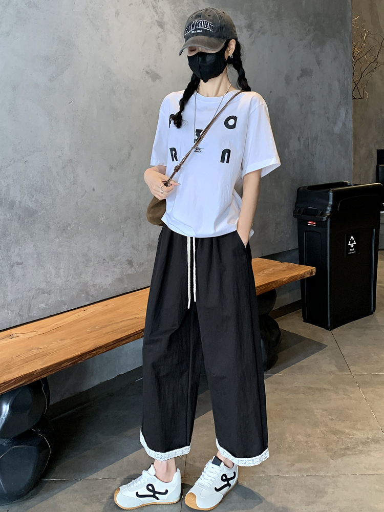 绝美蕾丝边阔腿八九分裤女2025夏季薄款气球裤遮胯显瘦奶奶裤女