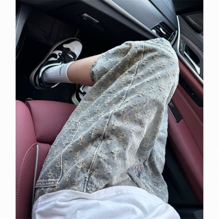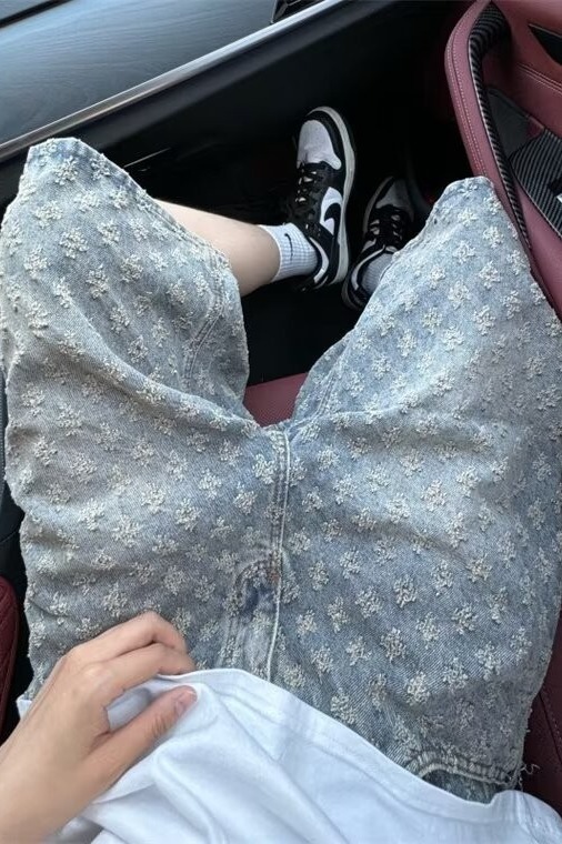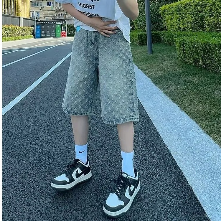 자카드 데님 반바지 남성 여름 얇은 미국 스타일 하이 스트리트 바지 레트로 트렌디 브랜드 중간 길이 바지 캐주얼 바지 트렌디스토어 가기