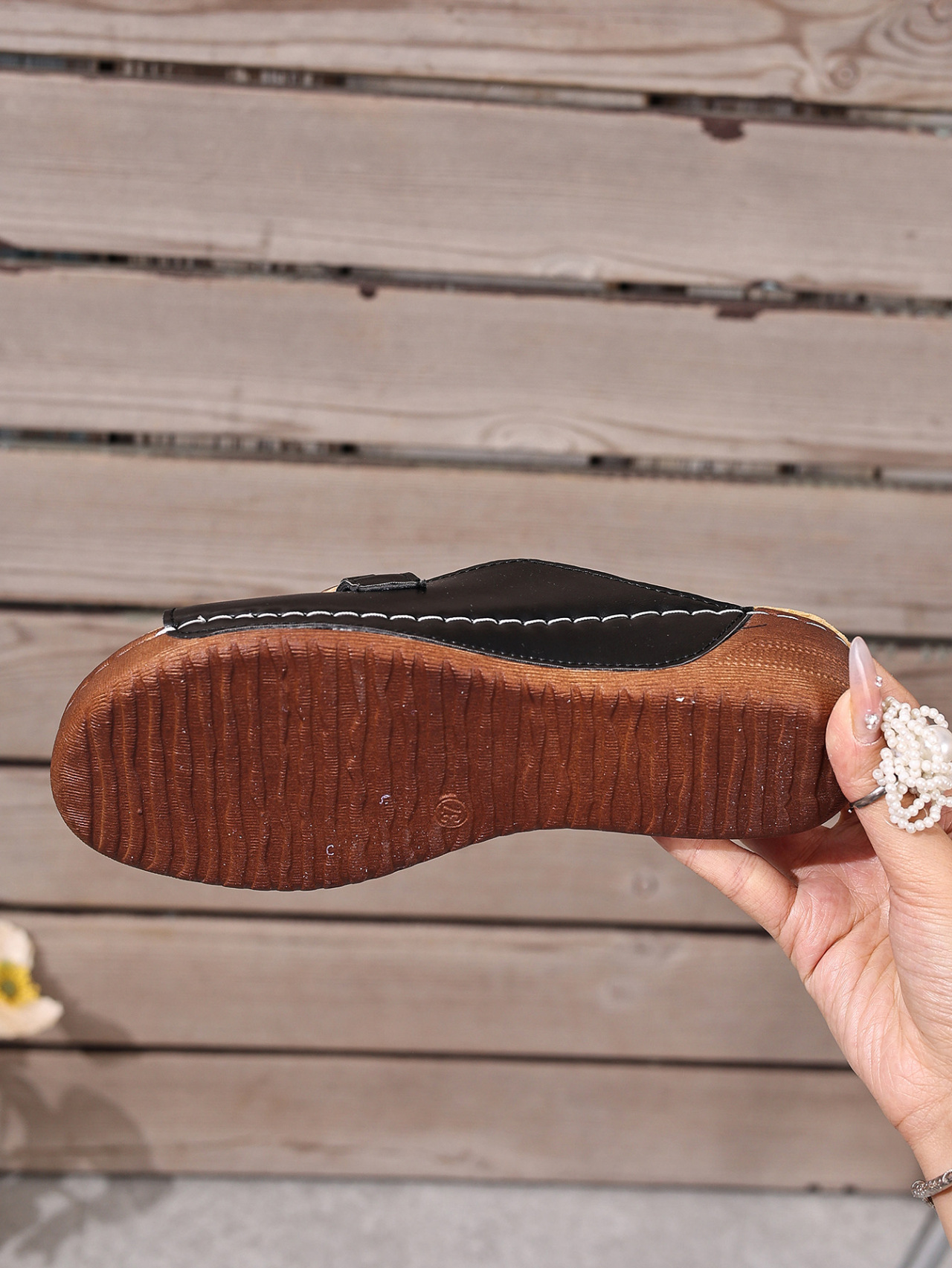 국경 간 대외 무역 플러스 사이즈 2025 여름 새로운 여성 두꺼운 밑창 샌들과 슬리퍼 금속 버클 장식 슬리퍼 여성 도매