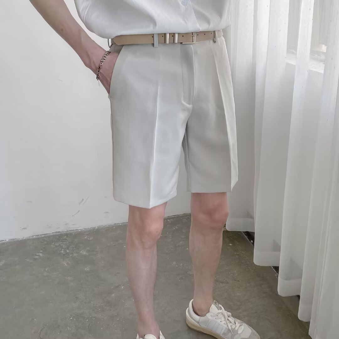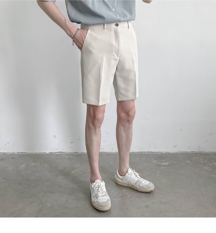 인터넷 연예인 남성용 5부 바지 트렌디한 남성용 정장 반바지 여름 신작 화이트 일본식 스트레치 남성용 5부 바지