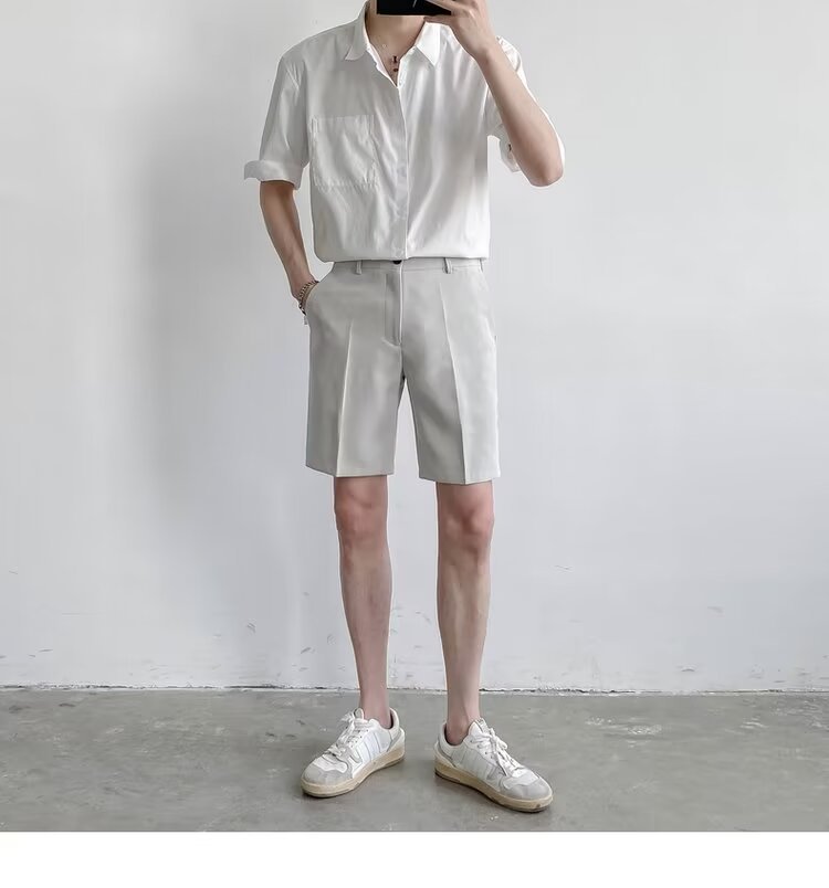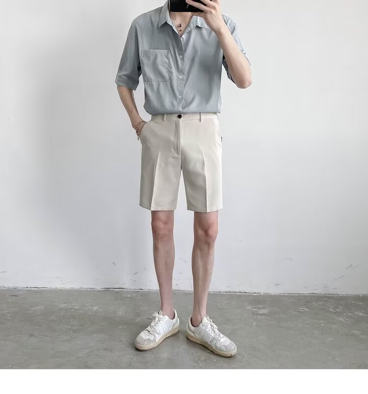 인터넷 연예인 남성용 5부 바지 트렌디한 남성용 정장 반바지 여름 신작 화이트 일본식 스트레치 남성용 5부 바지스토어 가기