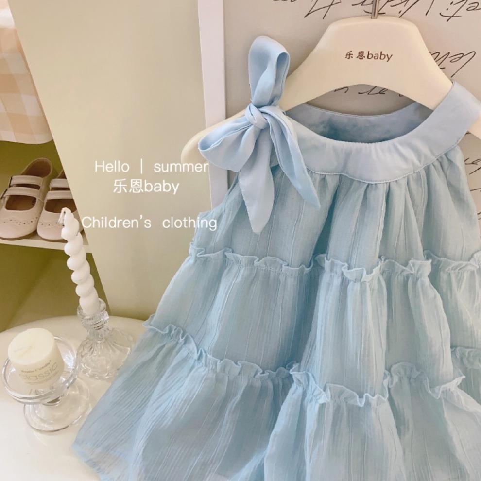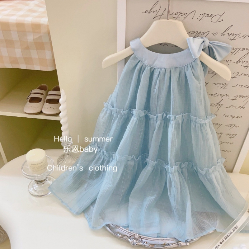 여자 여름 블루 홀터넥 드레스 2025 새로운 아기 달콤한 민소매 유행 공주 드레스 조끼 스커트스토어 가기