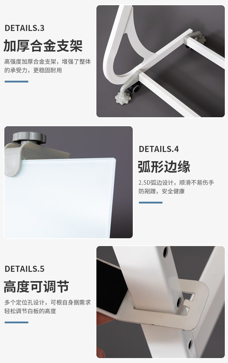 가정용 강화 유리 마그네틱 화이트 보드 팔찌 유형 움직일 수있는 쉬운 글쓰기 교육 사무실 회의 쓰기 화이트 보드