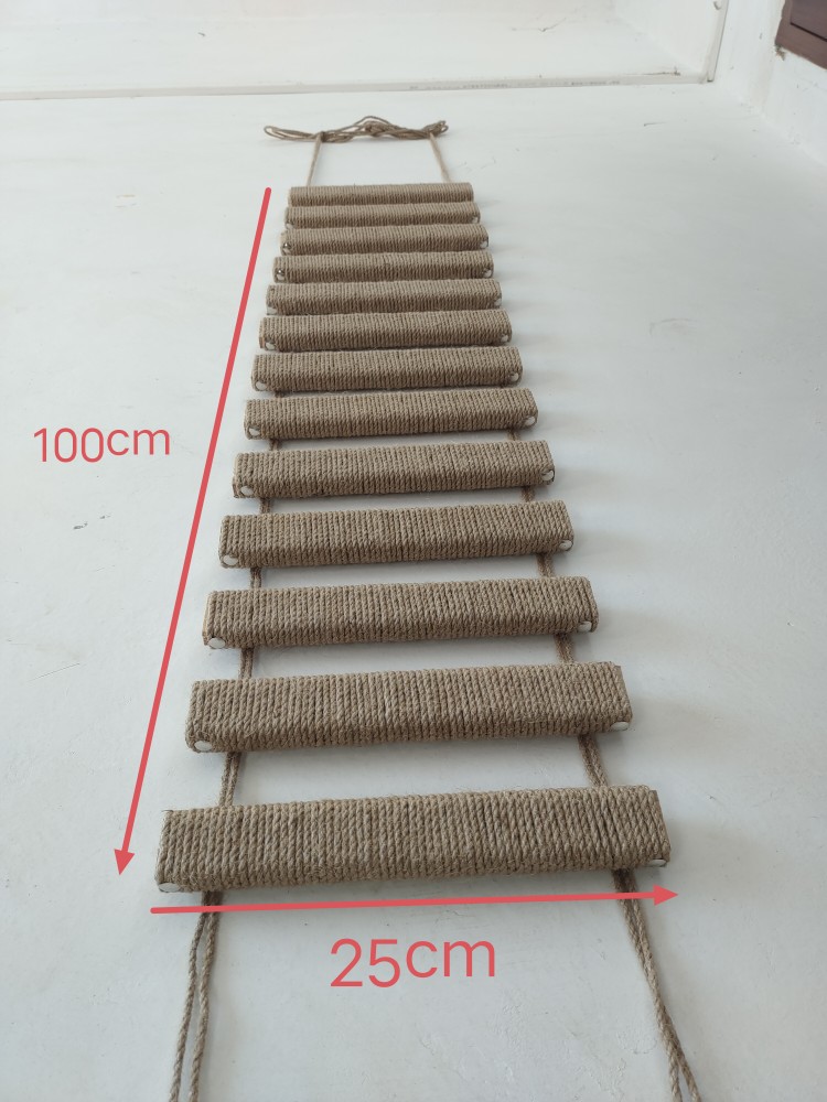 소나무 고양이 클라이밍 프레임, 사다리, 브릿지 사다리, 이중 목적 단단한 나무 대마 로프, 점프 플랫폼에 연결 가능, 고양이 둥지 발톱 연삭