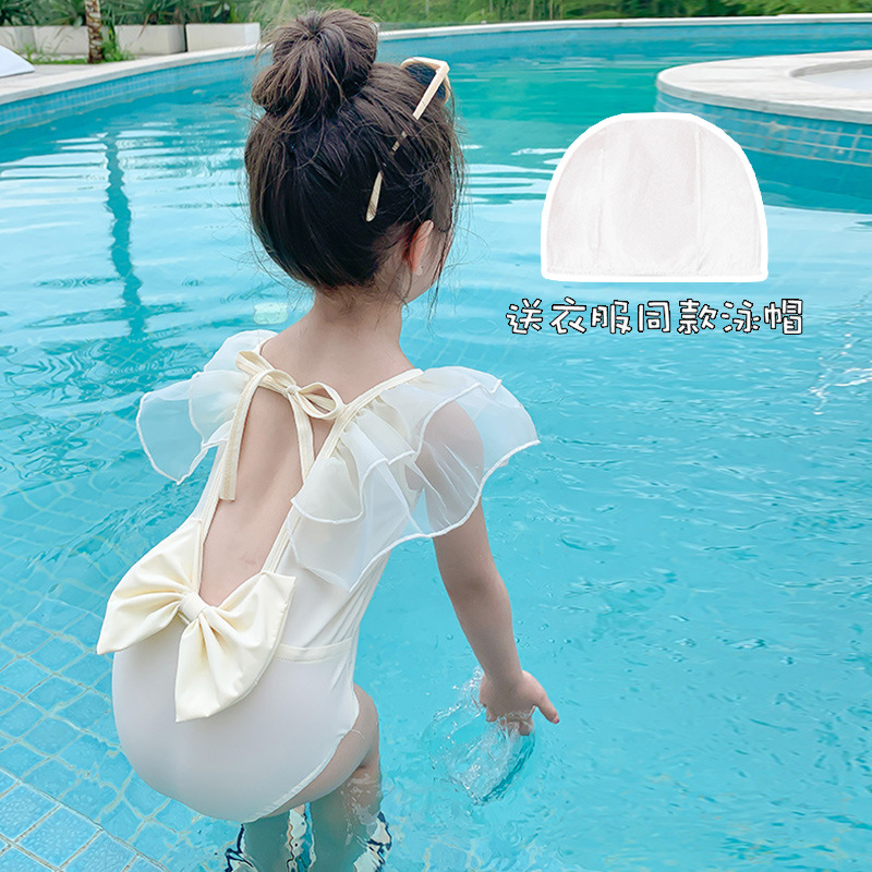 아동복 여름 신작 리본 백리스 온천 수영복 여아 원피스 속건 수영 인터넷 연예인 핫 스타일스토어 가기