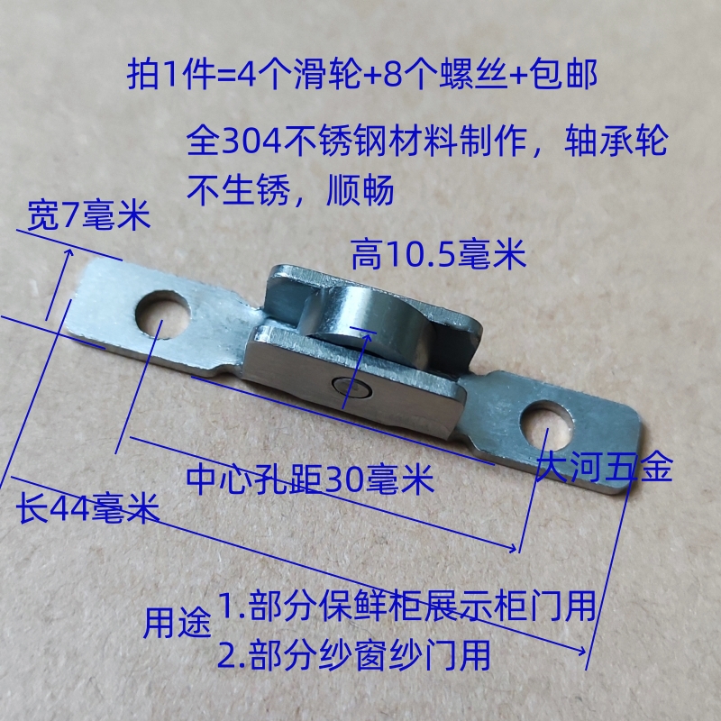 ✅도매 4 팩 7mm 넓은 스테인레스 스틸 베어링 휠 말라 탕 디스플레이 캐비닛 신선한 캐비닛 슬라이딩 도어 도르래 저항