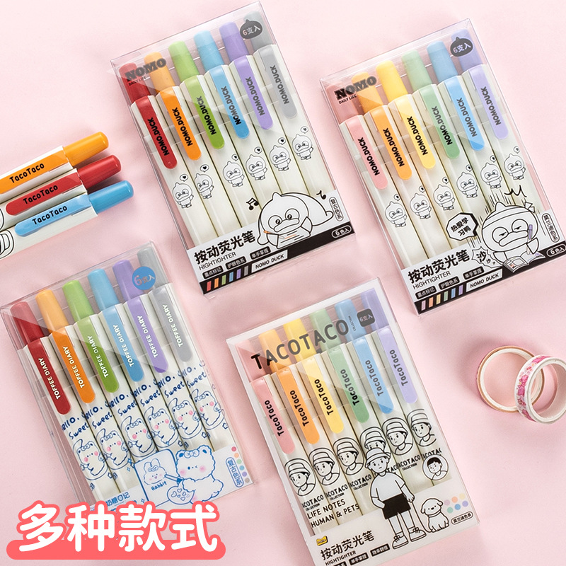 TacoTaco Press 하이라이트 눈 보호 Morandi Retro 컬러 부서 학생들은 키 마크 손 계정 컬러 펜을 사용합니다.스토어 가기