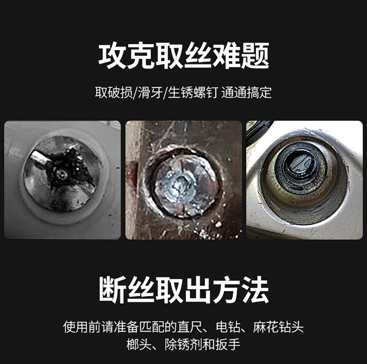 수도관 파손 및 파손 헤드 추출기 세트 삼각형 밸브 수도꼭지 역방향 나사 파손 헤드 나사 도구 와이어 리무버 도매