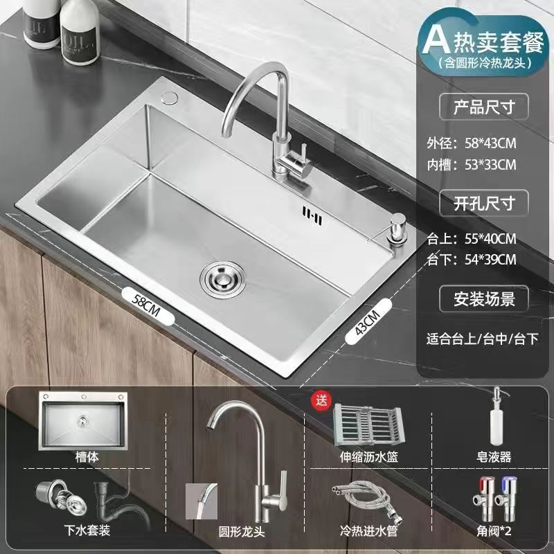 두꺼운 304 스테인레스 스틸 싱크 야채 분지 브러시 수제 대형 단일 그루브 주방 야채 분지스토어 가기