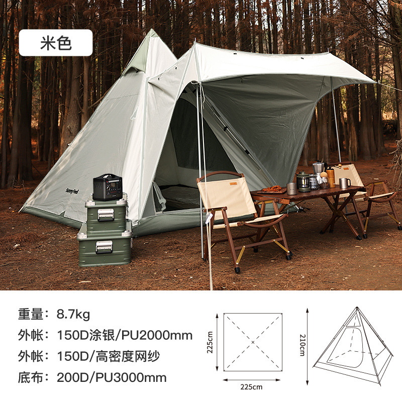 配件清单:外帐*1;内帐*1;支撑杆*2;风绳*8;地钉*15;外袋*1