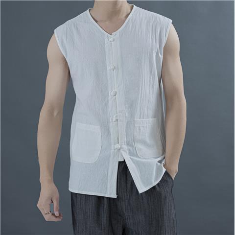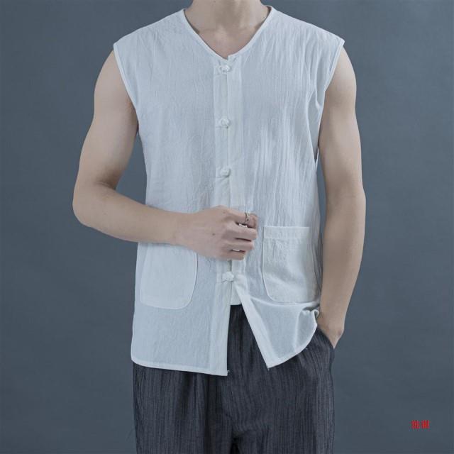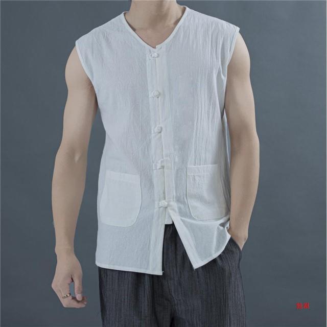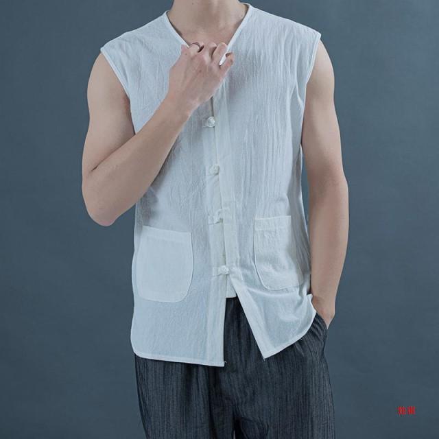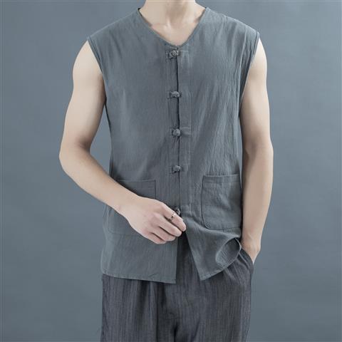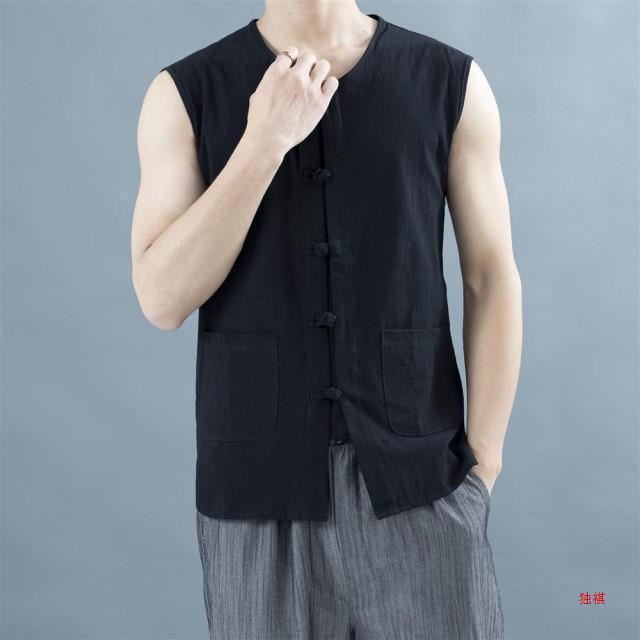 중국 복고풍 면 및 린넨 버튼 남성 당나라 정장 조끼, 몸에 꼭 맞는 조끼, 중국 스타일 트렌디 조끼, 중화민국 차복
