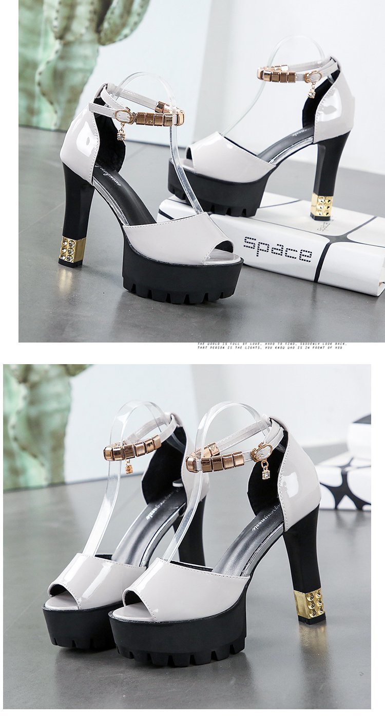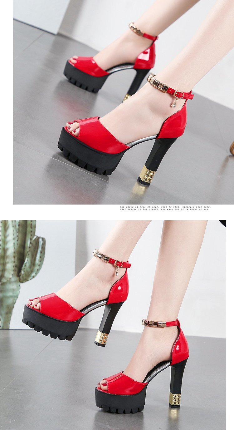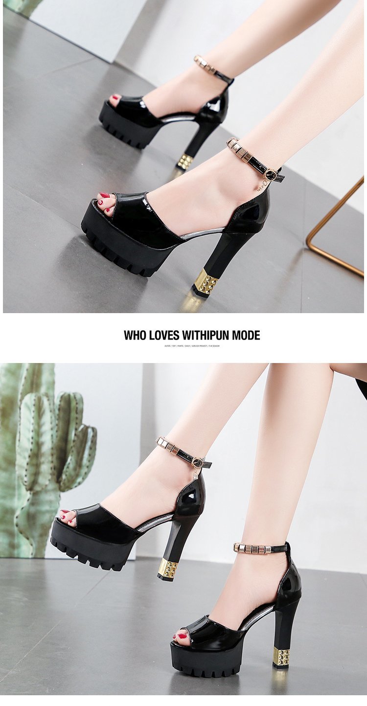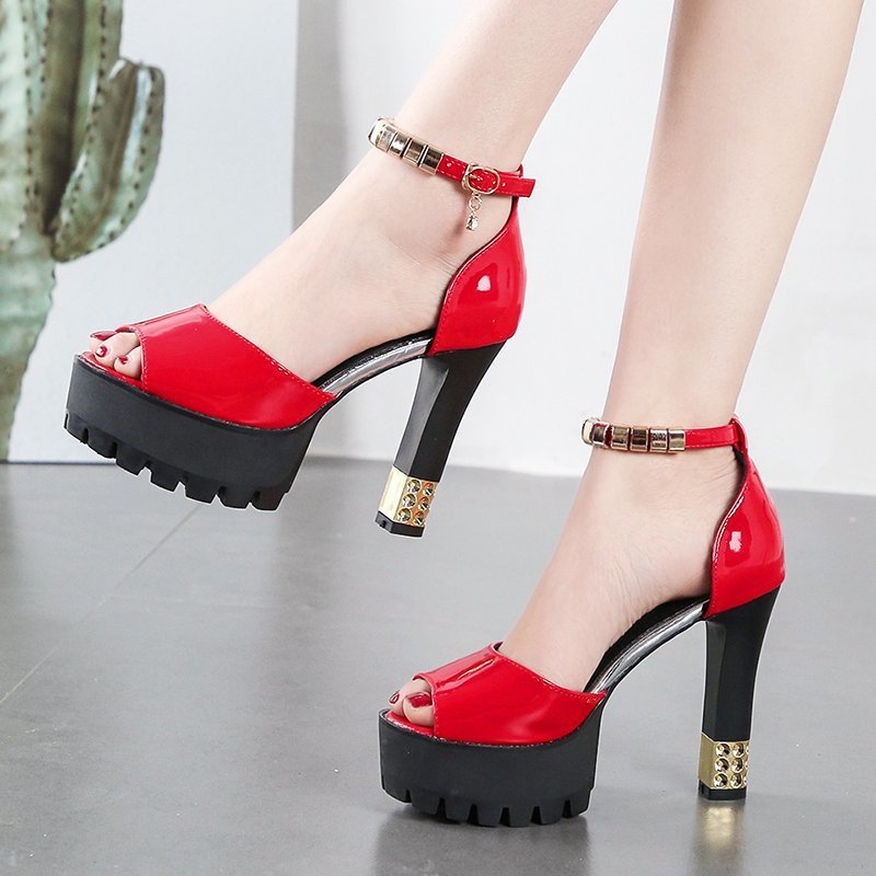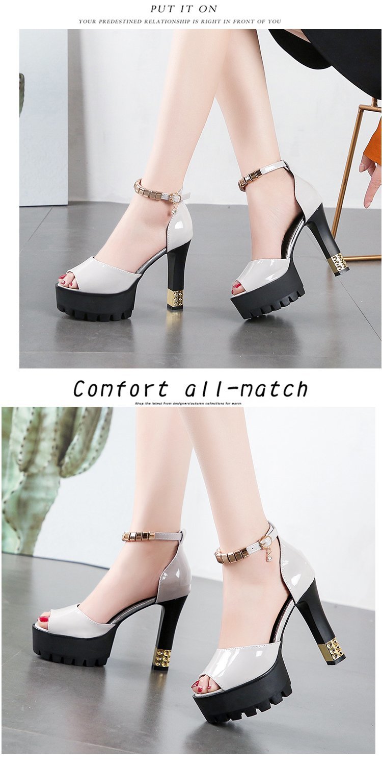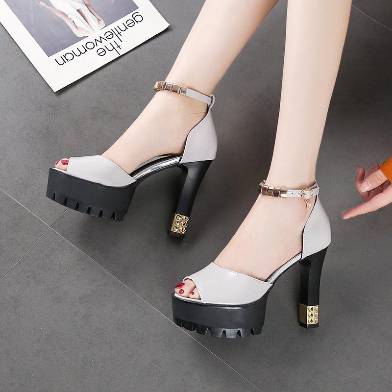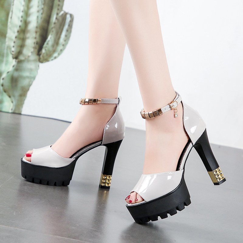 유럽과 미국의 크로스보더 하이힐 피쉬 입 샌들 여성 패션 새로운 섹시한 두꺼운 굽 두꺼운 밑창 하이힐 여름 나이트 클럽