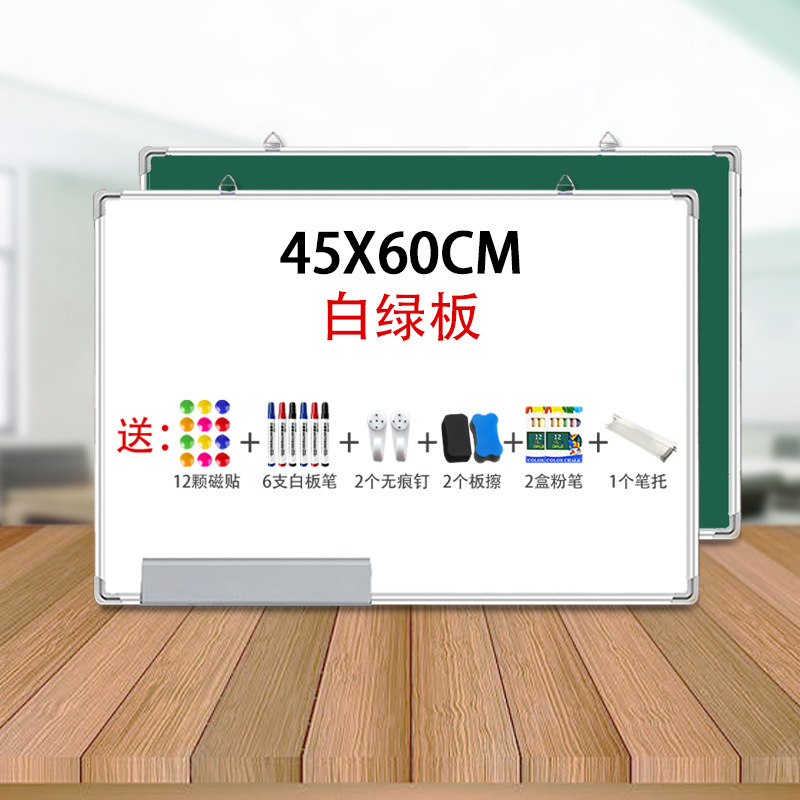 • [겸용] 두꺼운 은색 프레임 70*100 흰색 및 녹색 보드 + 무료 스티커 12개, 펜 6개, 분필 2개, 못 4개, 지우개 2개 1