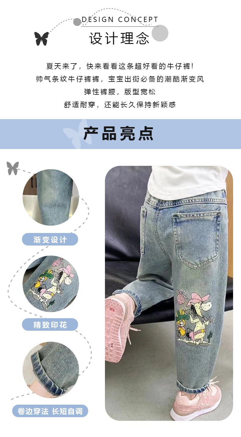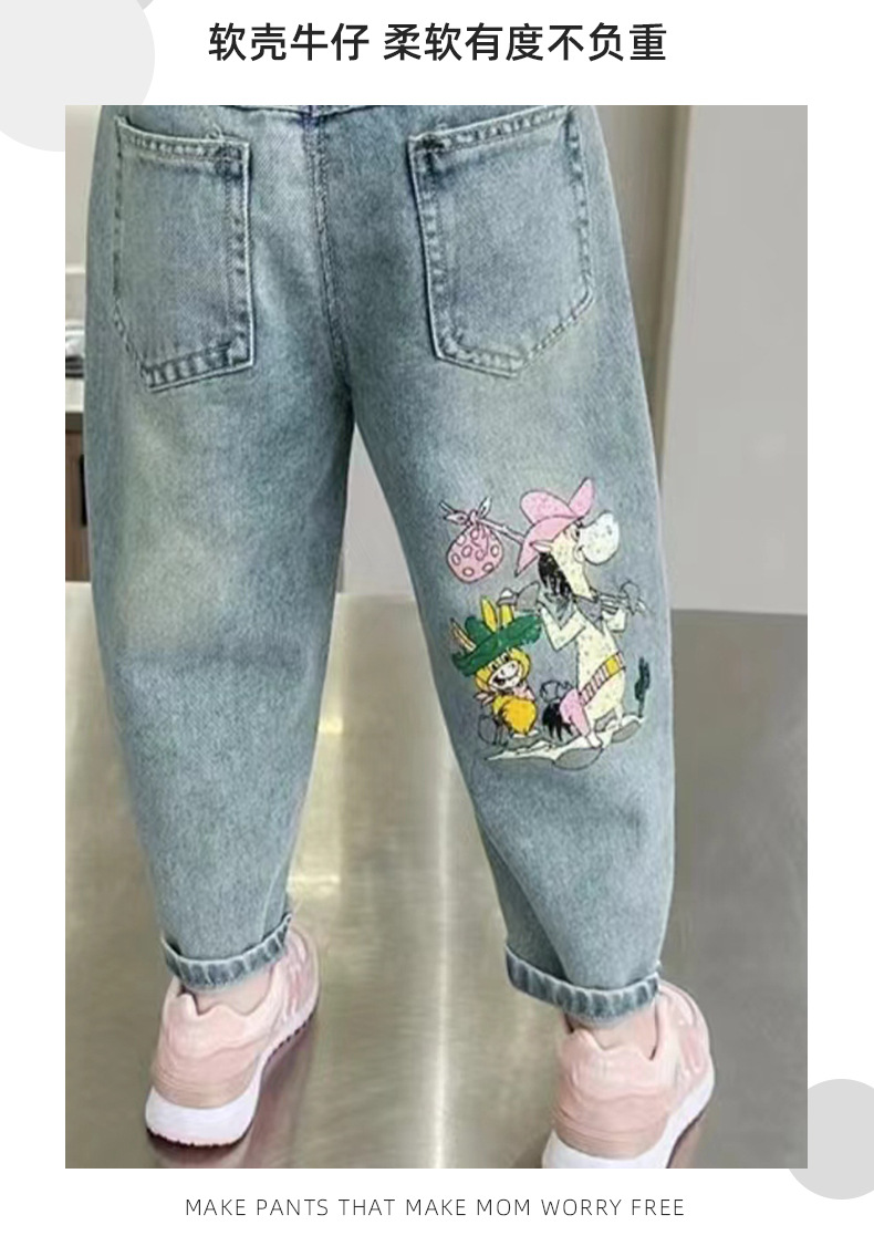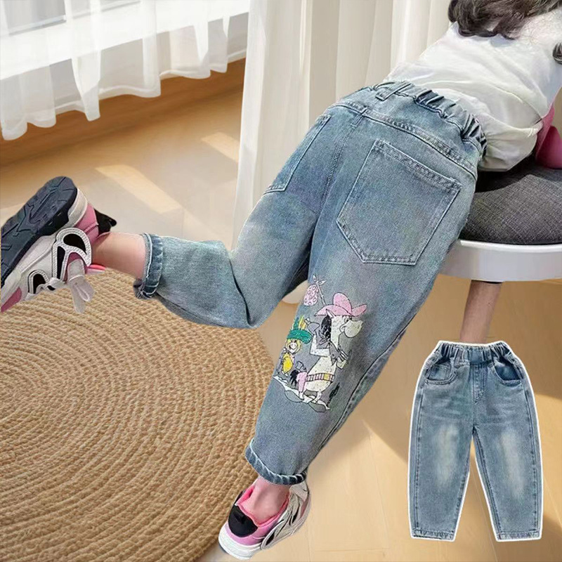 여자 서양식 느슨한 한국 스타일 봄 청바지 어린이 외복 2025 새로운 스타일 아기의 캐주얼 올 매치 트렌디 바지