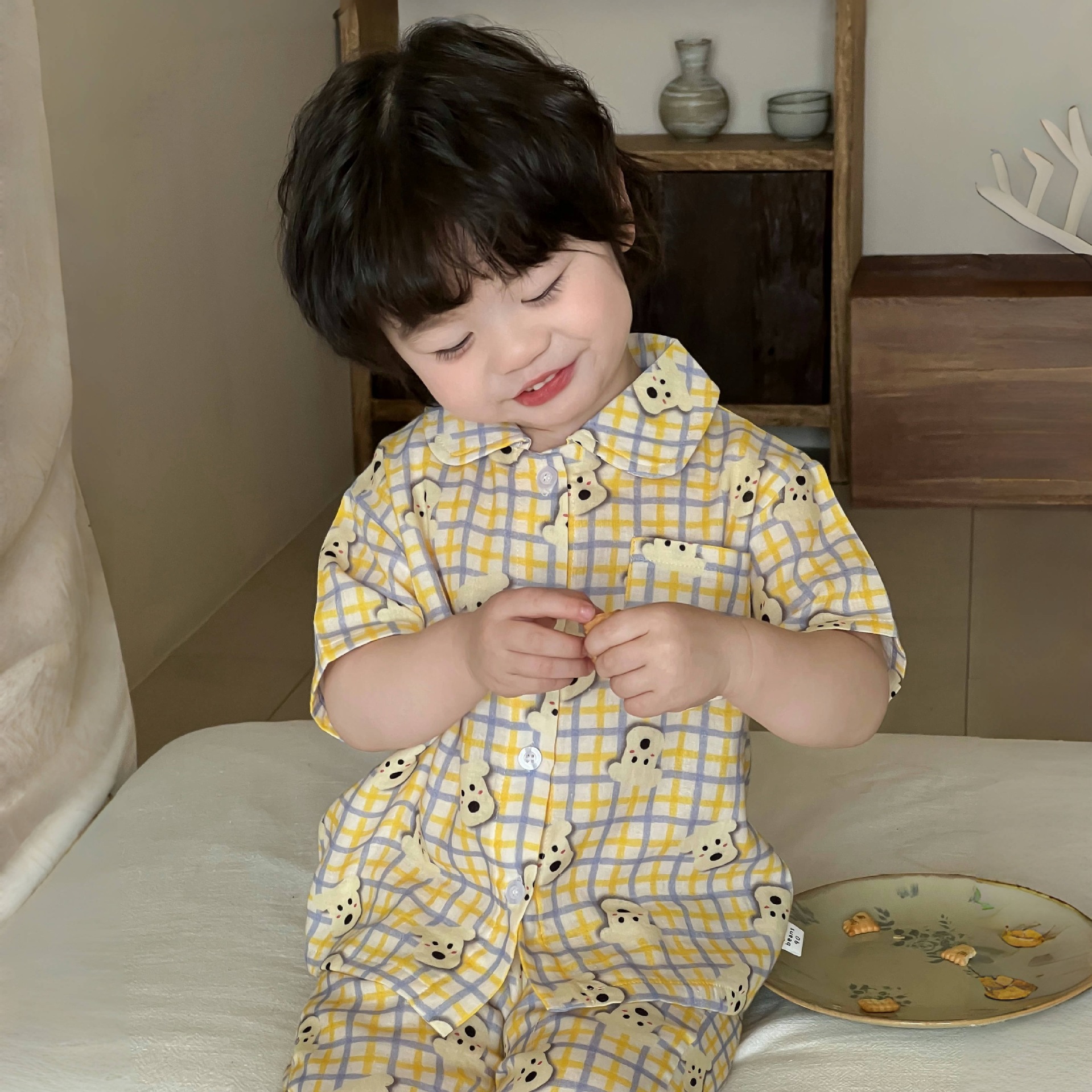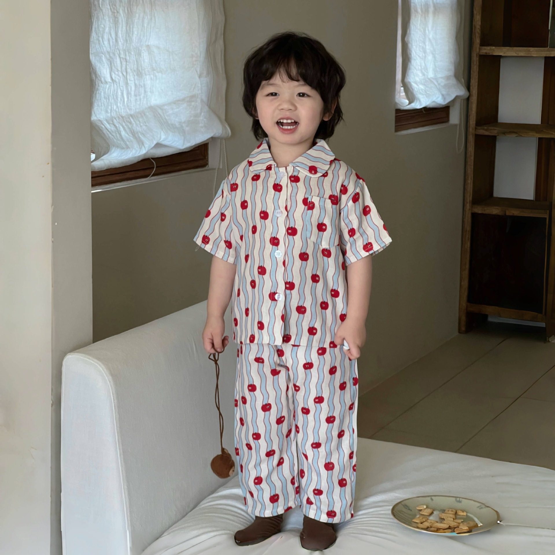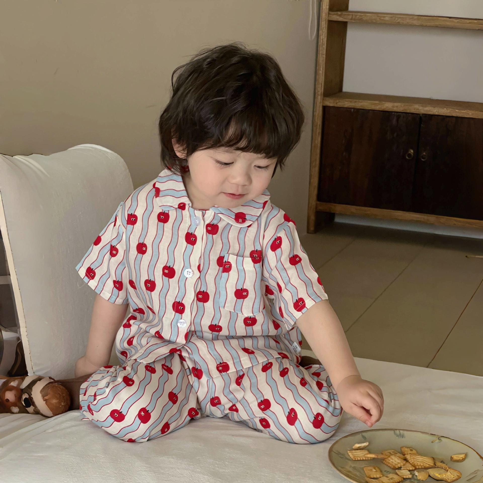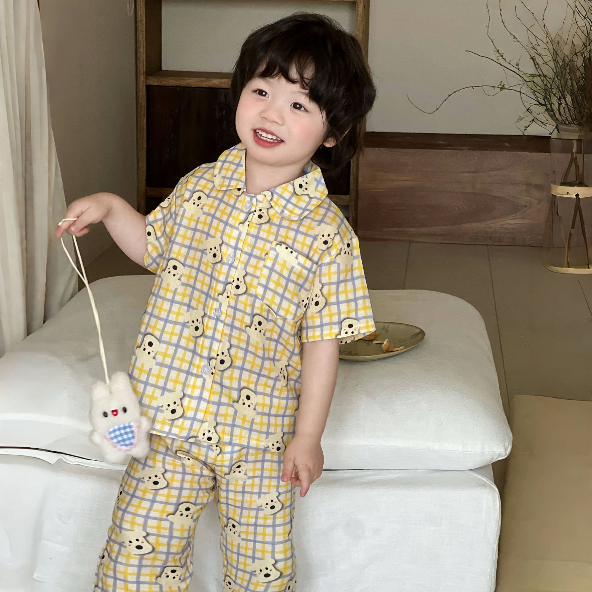 어린이 순면 잠옷 세트 2025 여름 어린이 순면 가정복 소년 소녀 용 어린이 면사 반팔 모기 방지 바지스토어 가기