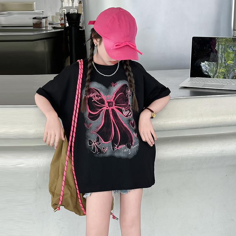 여자 반팔 티셔츠 여름 2025 새로운 스타일 여자 여름 패션 탑 여자 한국 스타일 힙합 루즈 롱 티셔츠