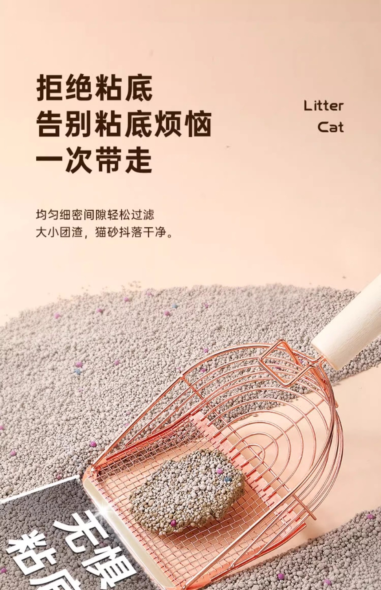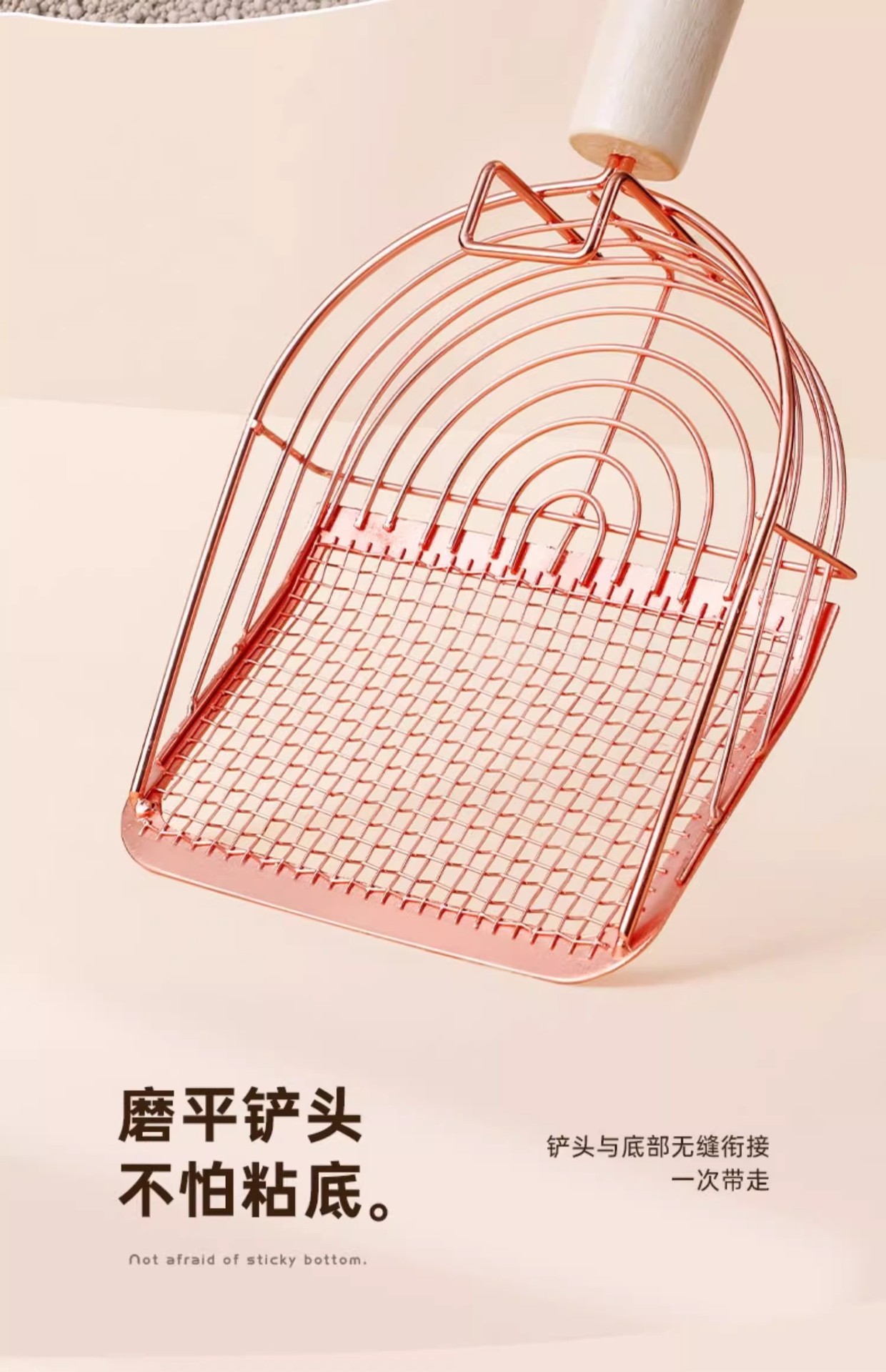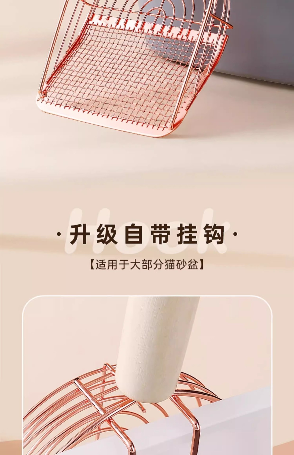 • [로즈골드] - 6세대 새롭게 업그레이드된 이중사양 고양이 배변삽 (모래빠짐빠른, 바닥붙음방지, 후크포함)