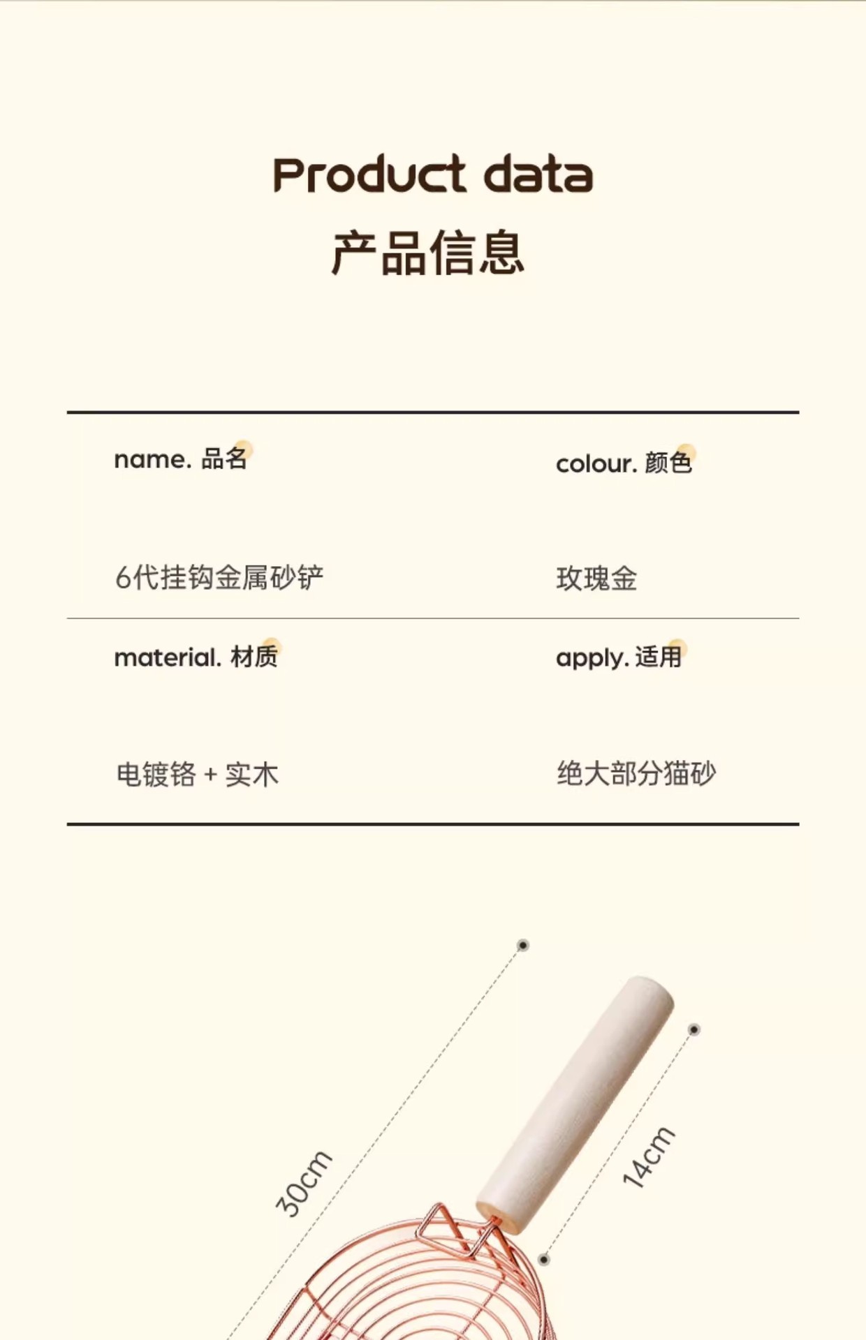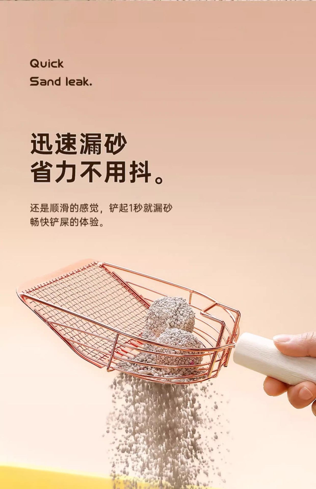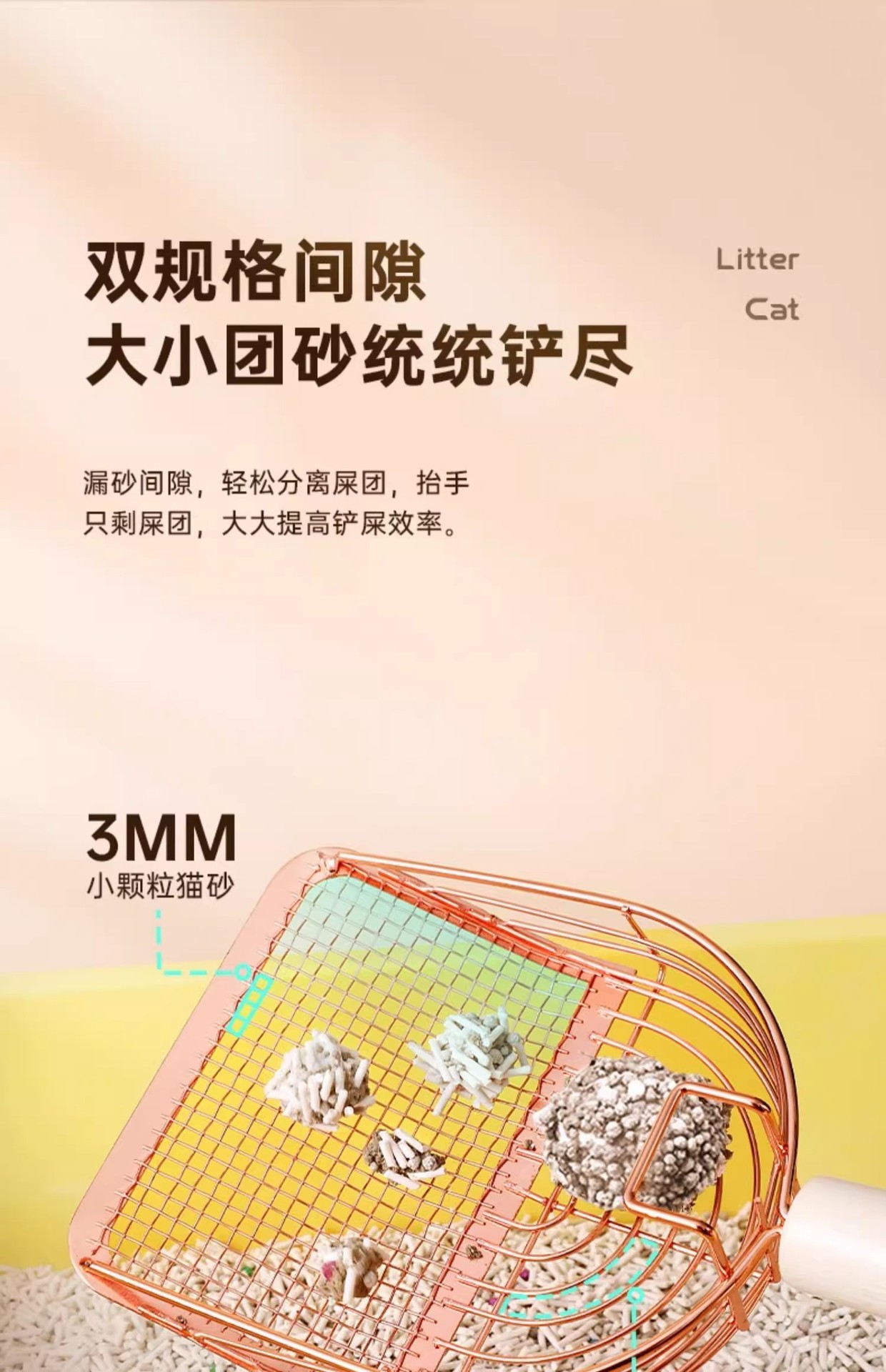 • [로즈골드] - 6세대 새롭게 업그레이드된 이중사양 고양이 배변삽 (모래빠짐빠른, 바닥붙음방지, 후크포함)