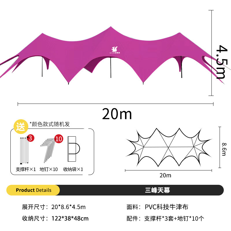싱글 · 더블 3 봉우리 초대형 겐팅 캐노피 문어 야영 야외 캐노피 완비산 캠프 연꽃 피닝