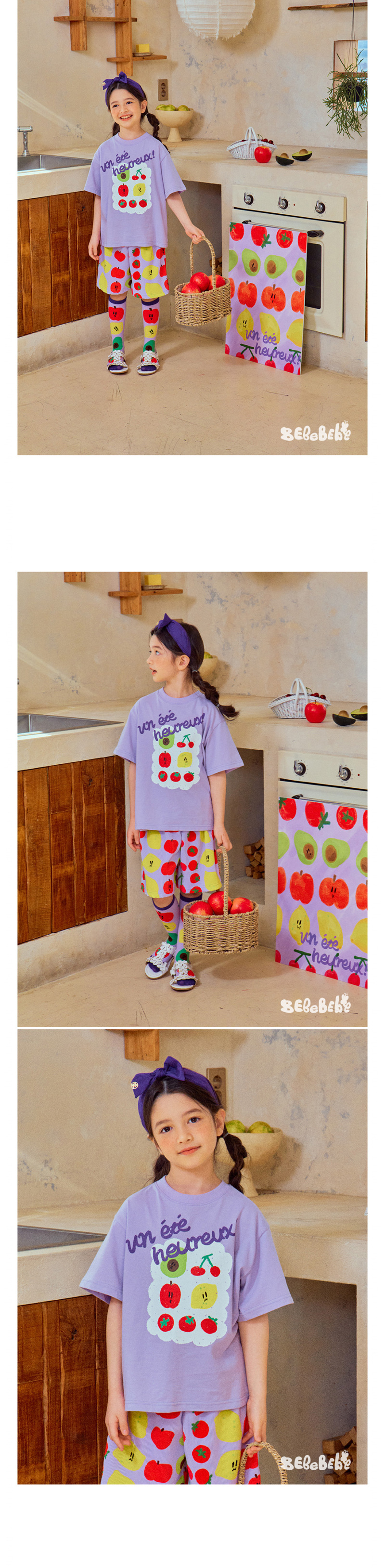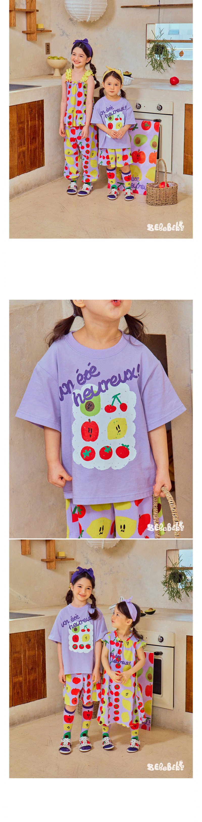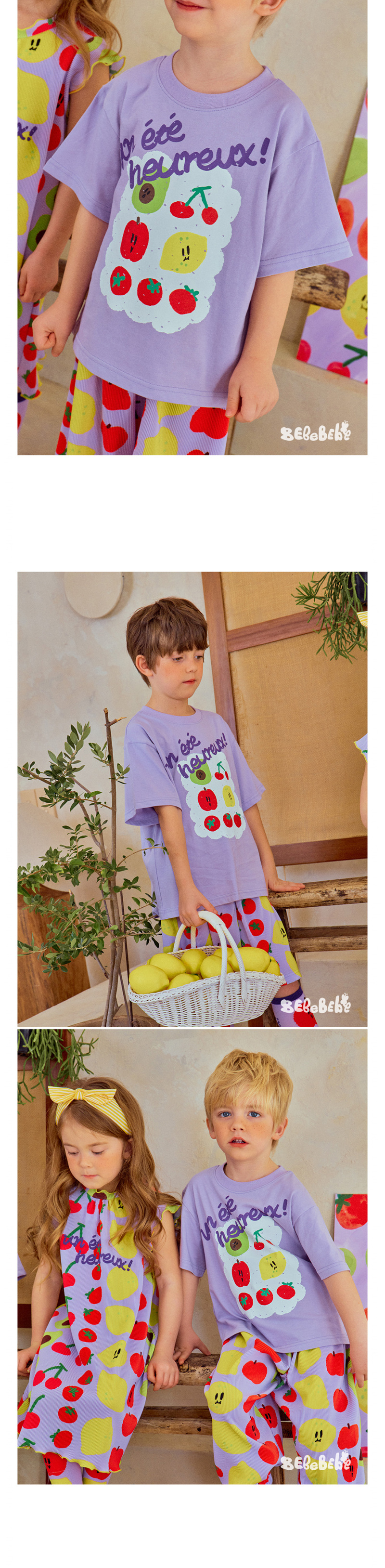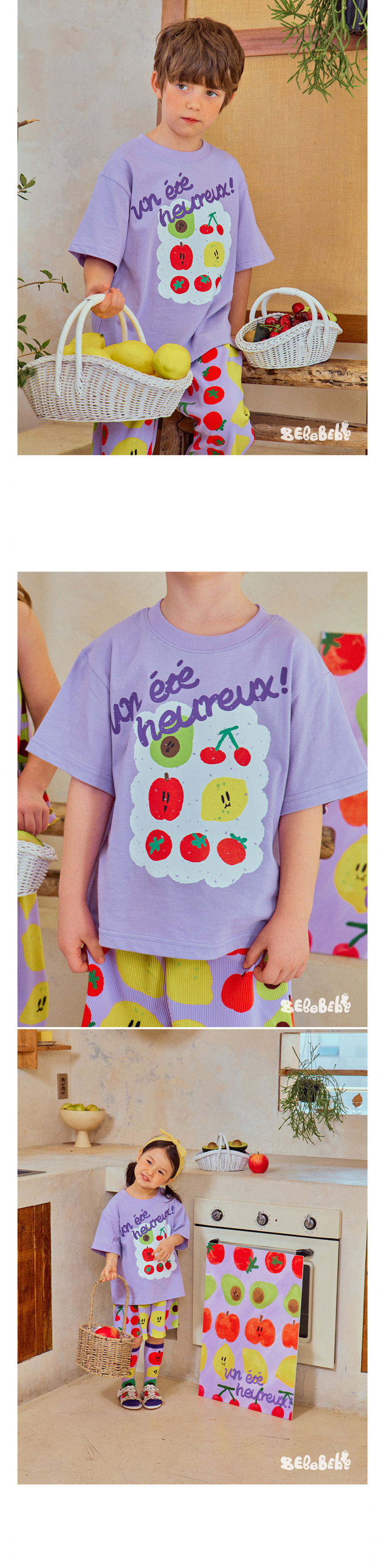 어린이 소년 '2025 년 여름 새로운 BEBEBE 어린이 캐주얼 과일 영어 풀오버 짧은 소매 티셔츠스토어 가기