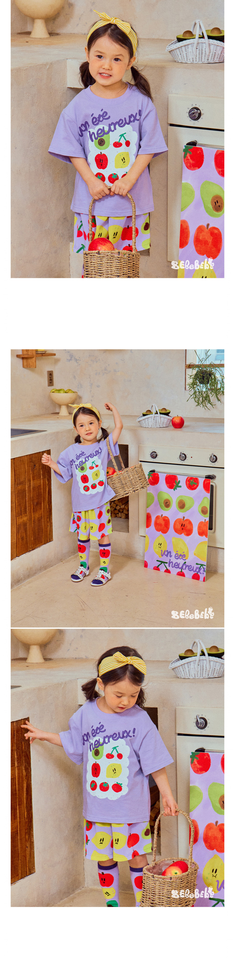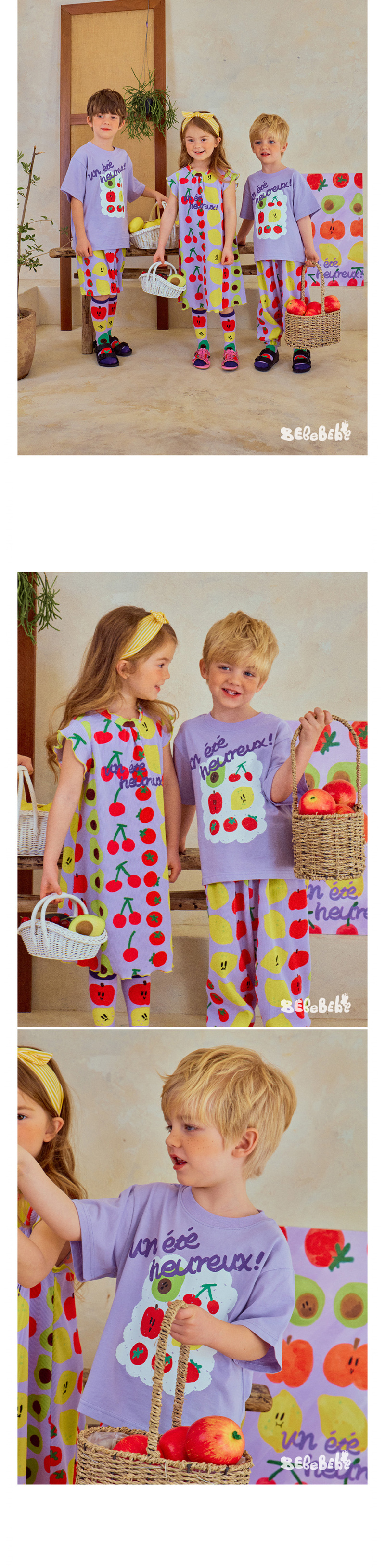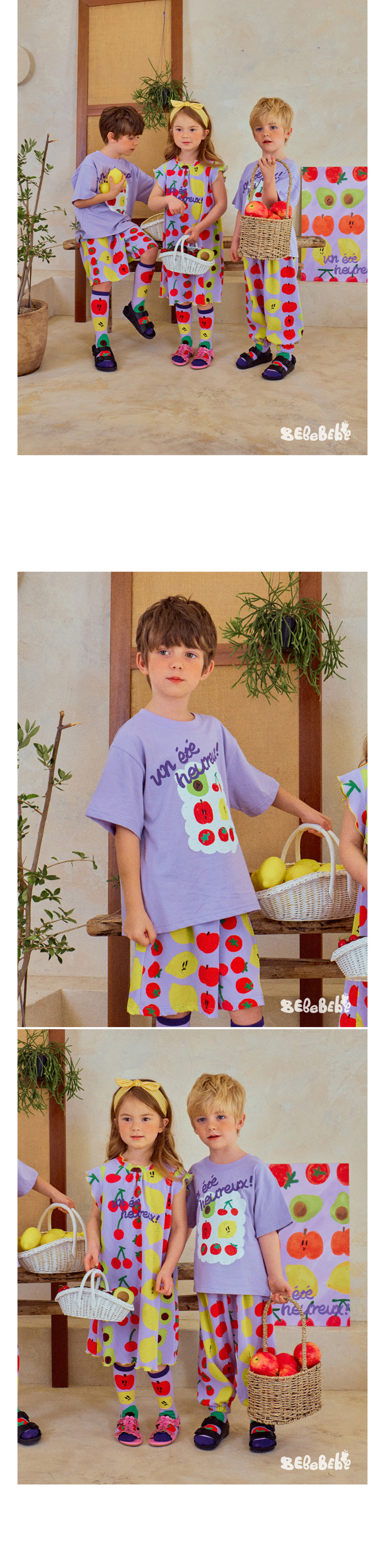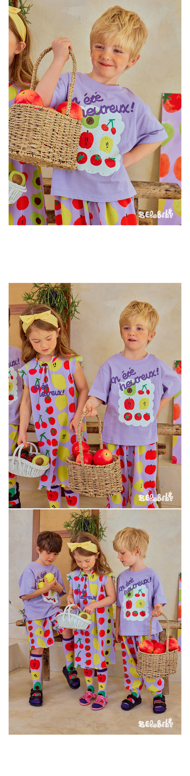 어린이 소년 '2025 년 여름 새로운 BEBEBE 어린이 캐주얼 과일 영어 풀오버 짧은 소매 티셔츠스토어 가기