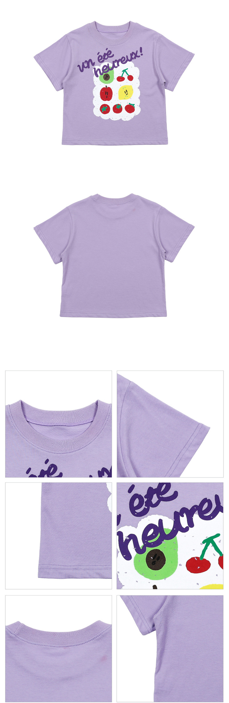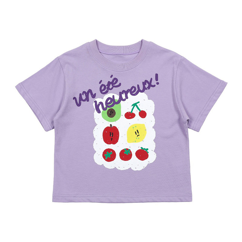 어린이 소년 '2025 년 여름 새로운 BEBEBE 어린이 캐주얼 과일 영어 풀오버 짧은 소매 티셔츠
