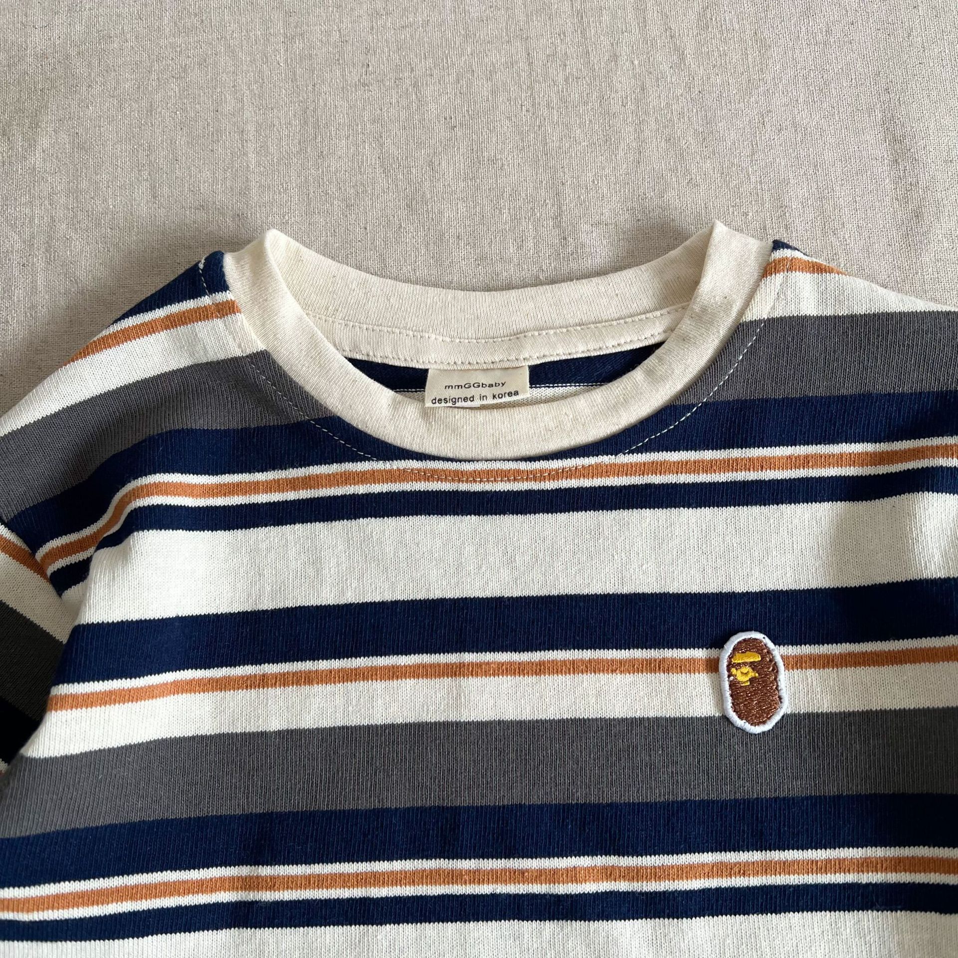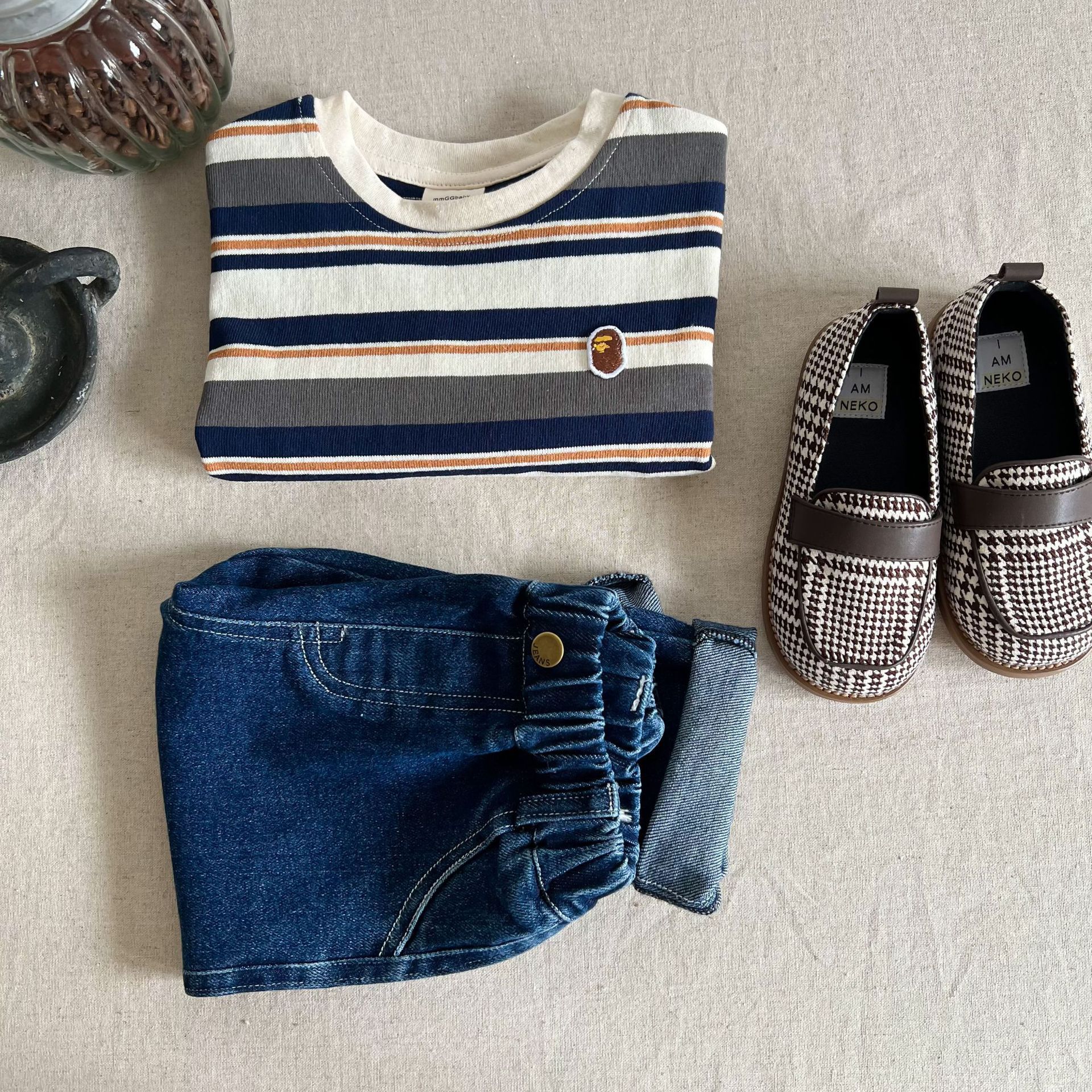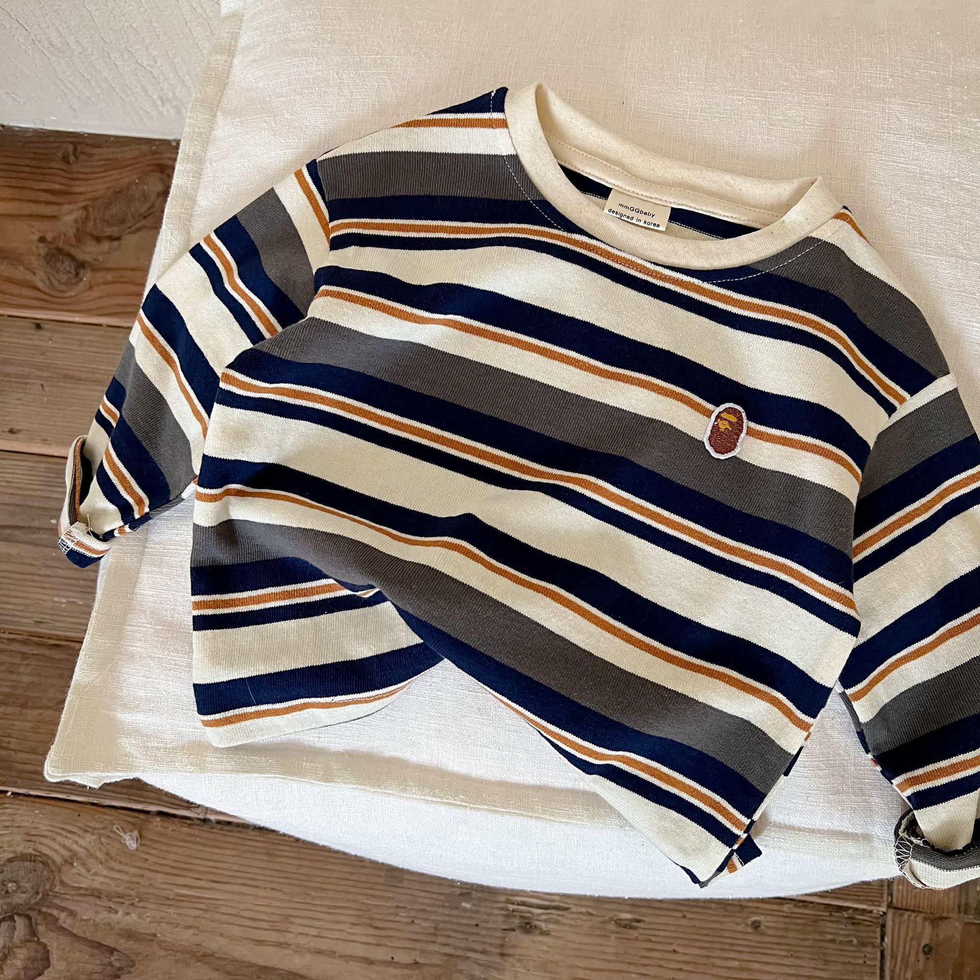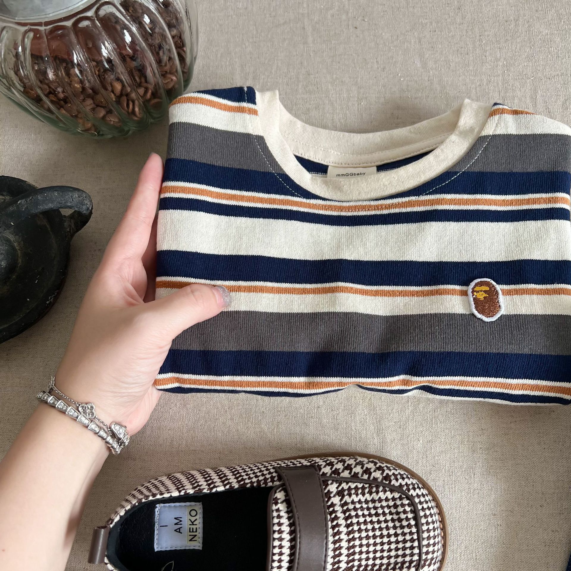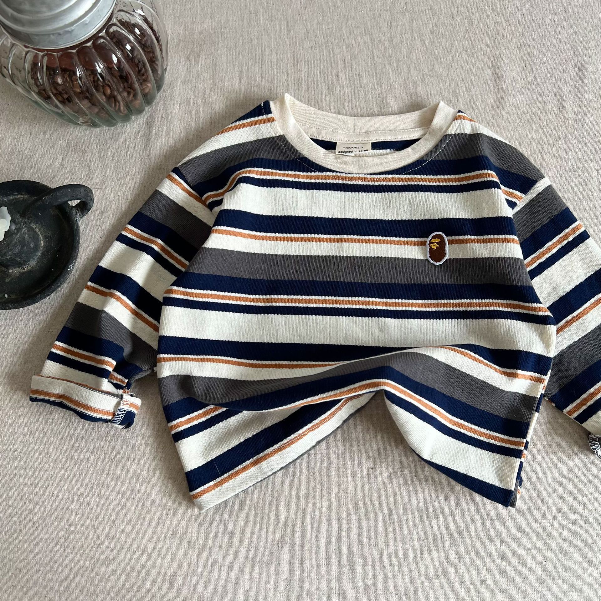 2024 봄과 가을 한국 스타일 아기 소년과 소녀 얇은 탄성 간단한 중소 어린이 캐주얼 스트라이프 땀 패셔너블 올매치